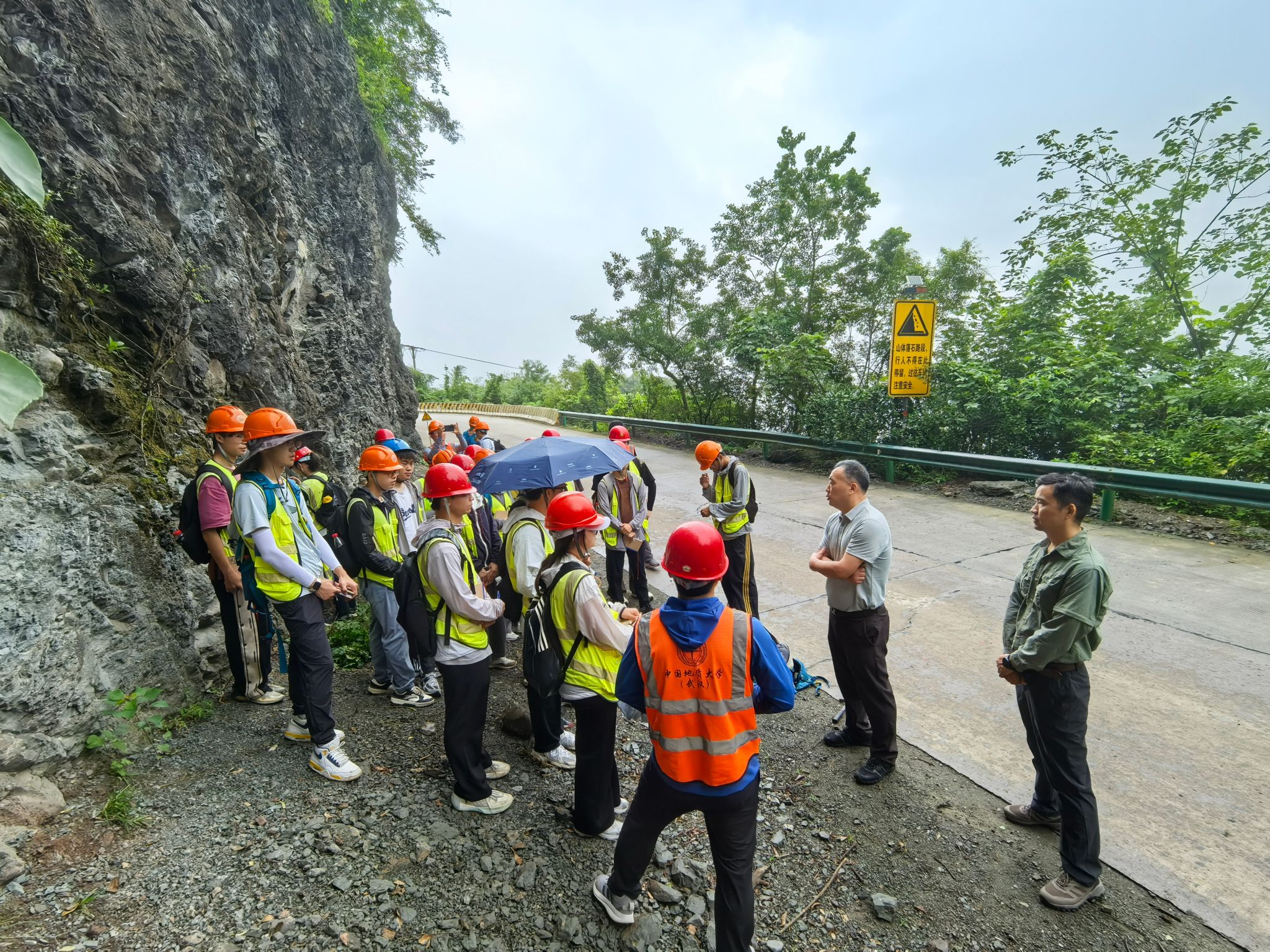 12日上午,朱红涛、李占轲等一行踏勘花鸡坡教学线路,察看野外实践教学开展情况。在现场,学院实习队队长李嘉光介绍了今年野外教学的创新举措,实习队学术指导刘晓峰介绍了教师集体备课情况。他表示,秭归实习基地依托区域特色地质地貌,为同学们提供了极其宝贵且直观的野外实践平台,他希望大家把握机遇,勤于思考、勇于发问,不仅要掌握识别方法,更要理解地质演化规律,真正做到“知行合一”。