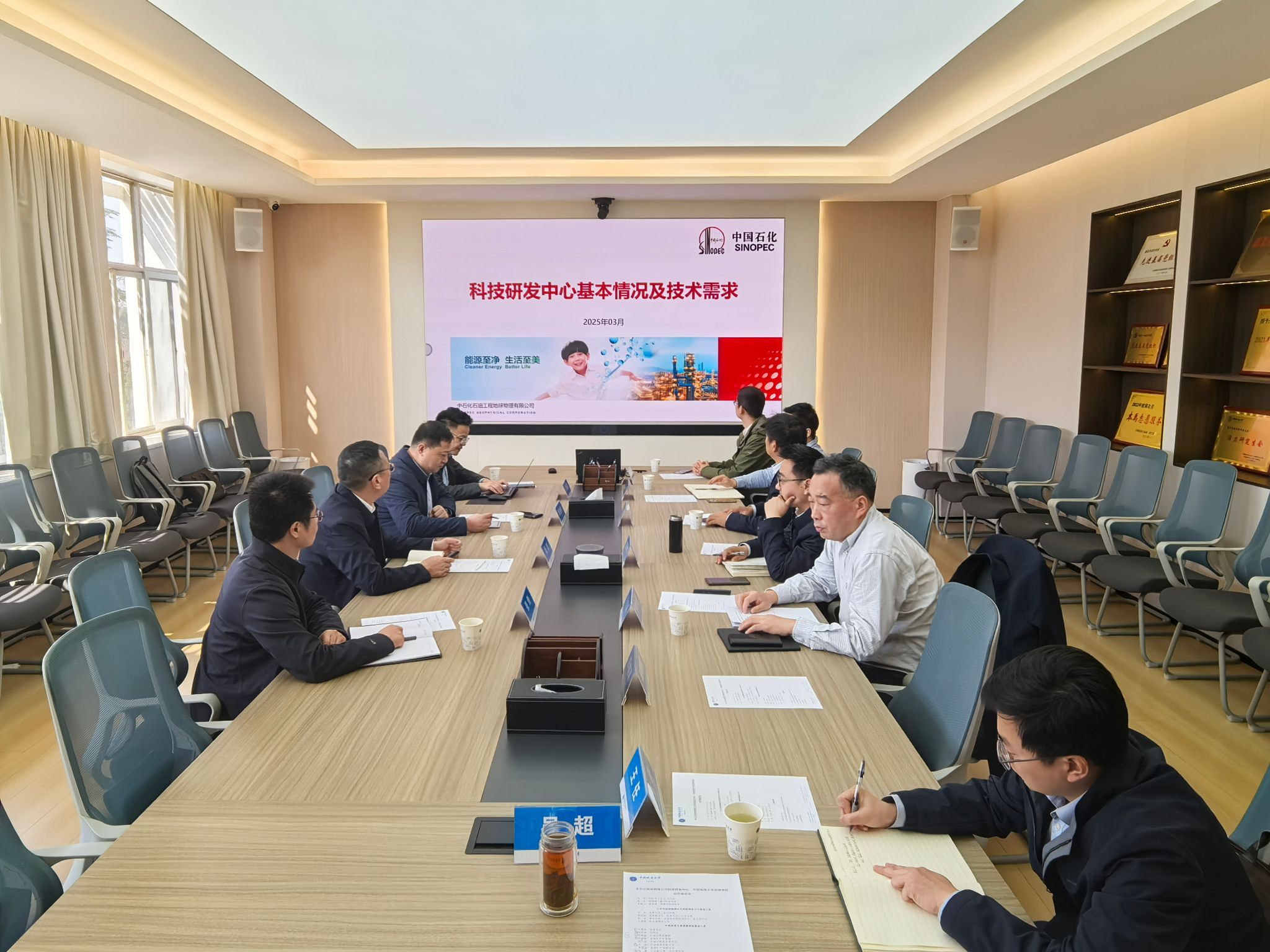 肖杰对科技研发中心、信息和数字化中心与博士后科研工作站情况进行介绍,围绕重点勘探领域现存问题及技术需求开展深入交流,同时就重点研究方向提出合作意向。