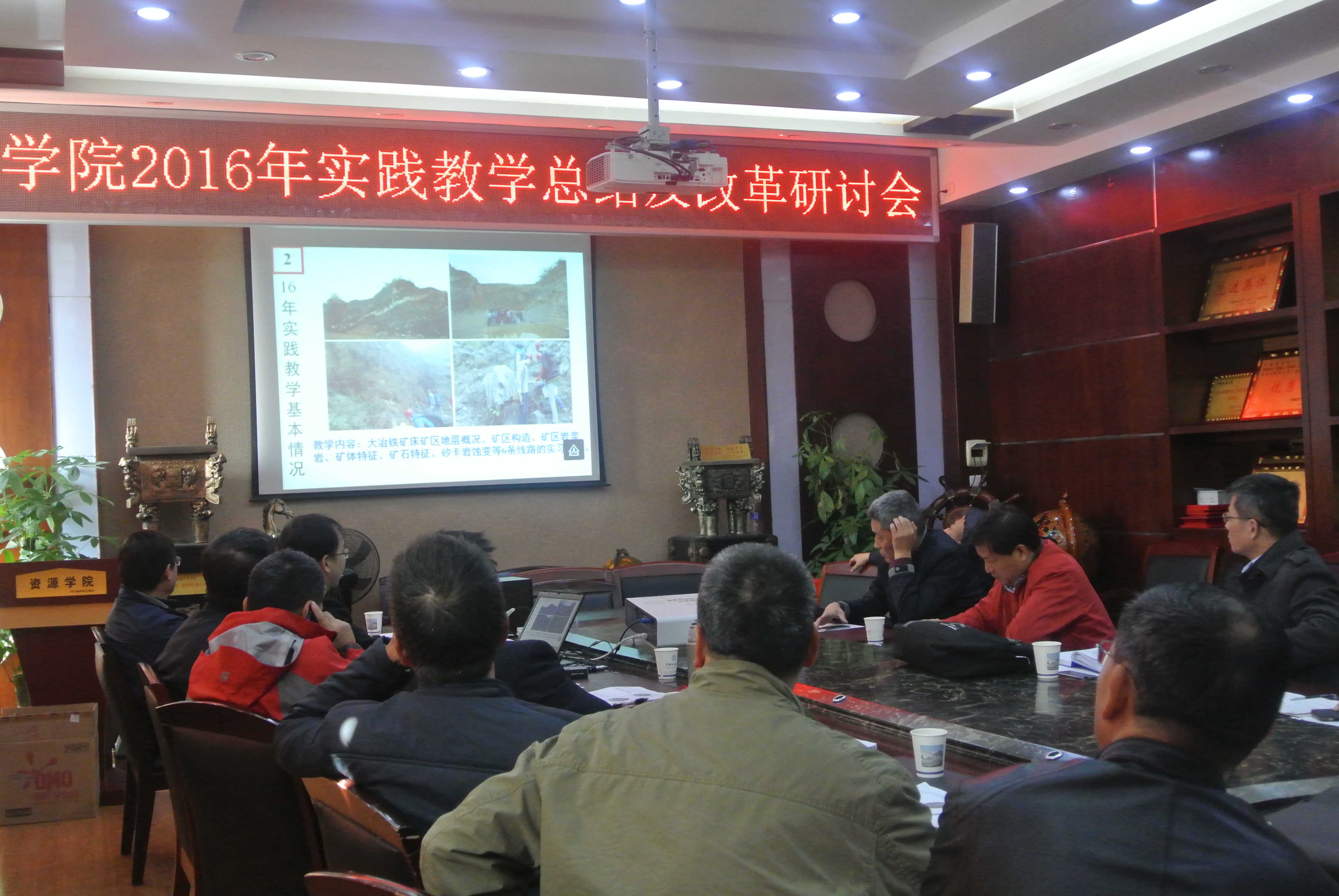 2016年周口店实习带队队长焦养泉教授、周口店教学路线建设项目负责人周江羽教授、北戴河实习带队队长孙华山副教授、秭归实习带队队长关振良教授、江汉油矿实习队长顾军教授、咸宁-通山专业实习队长陈振林副教授(因出国委托沈传波教授汇报)、大冶专业教学实习队长毕诗健老师汇报了2016年各基地实习的基本情况和存在的问题,提出了建议。周口店、北戴河、秭归是学校建设的传统三大地学类实习基地,今年是我院实行双导师制的第一年,师资力量得到加强,取得很好的效果,完满完成了今年的教学任务。今后在建设适合本专业特色的教学路线体系,建立稳定的教学团队,实现教学的传承方面还将进一步改进。江汉、咸宁和大冶是学院负责建设的专业实习基地,在学院的支持和实习基地教学团队的努力下,已完成基础内容建设包括教学大纲、教学内容和安排等,满足开课需求,今后还将进一步加强建设。辅导员刘明辉老师汇报了学生对实习的评价调查结果,学生们对各基地实习的总体评价较好,对于实习的目的、地质思维的培养、专业的兴趣等有较好的认识。