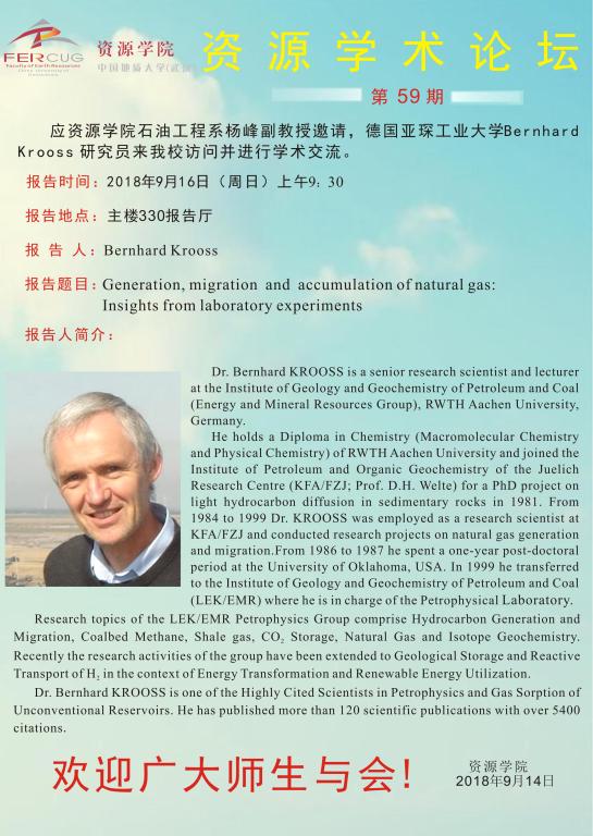 【9月16日】第五十九期资源学术论坛:Bernhard Krooss 研究员学术报告