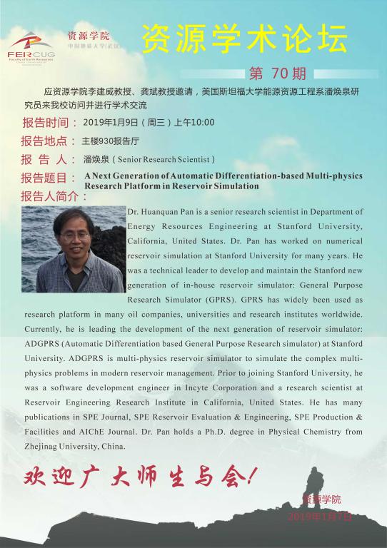 【1月9日】第70期资源学术论坛:潘焕泉学术报告