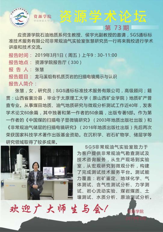 【3月1日】第73期资源学术论坛:张慧学术报告
