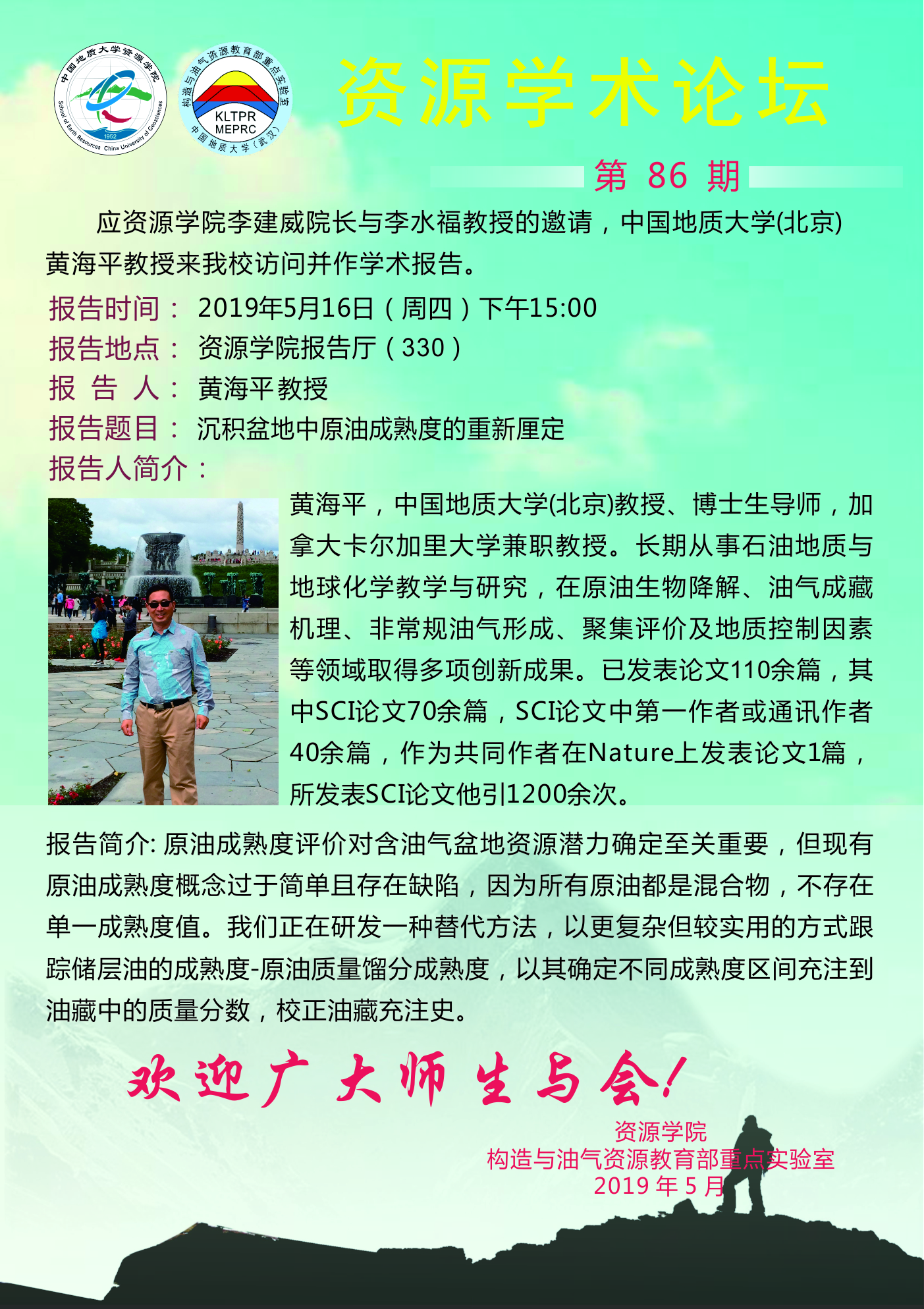 【5月17日】第86期资源学术论坛:黄海平学术报告