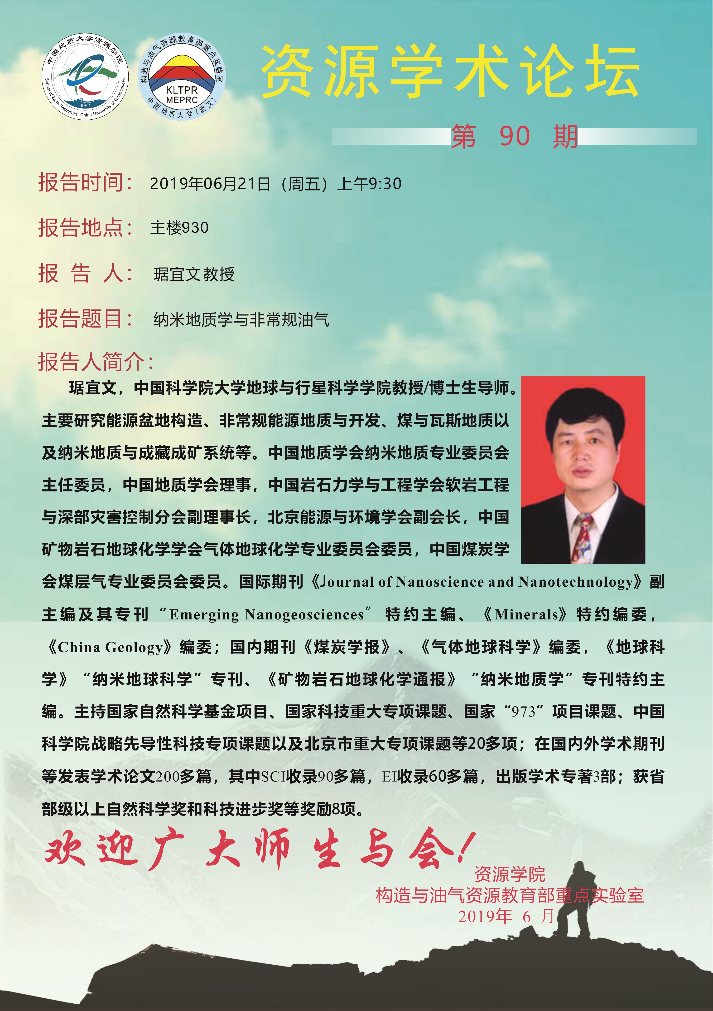 【6月21日】第90期资源学术论坛:琚宜文学术报告