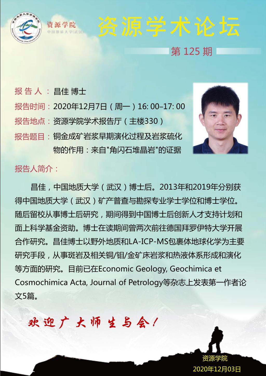 【12月7日】第125期资源学术论坛:昌佳学术报告