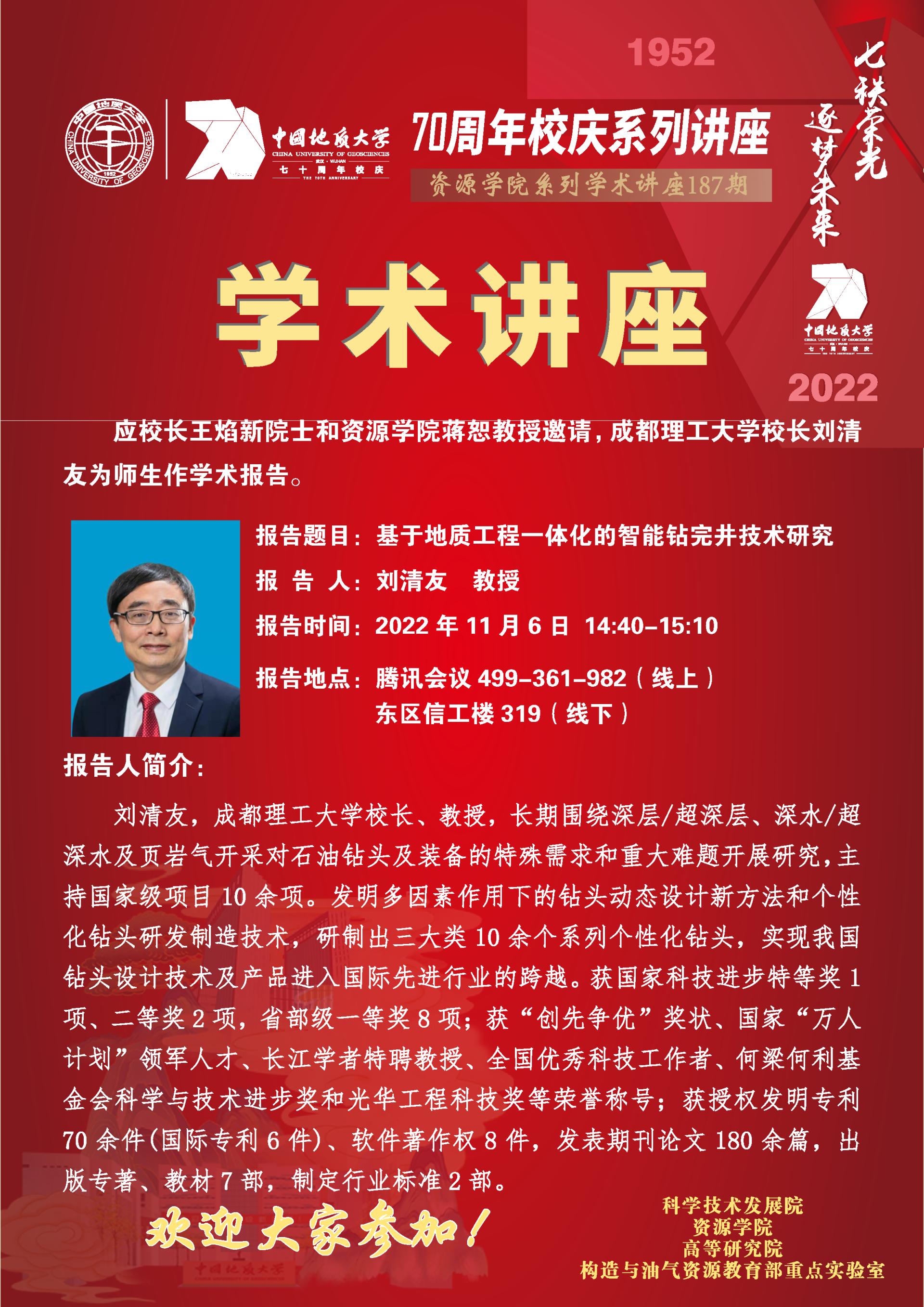 【11月6日】第187期资源学术论坛:刘清友学术报告