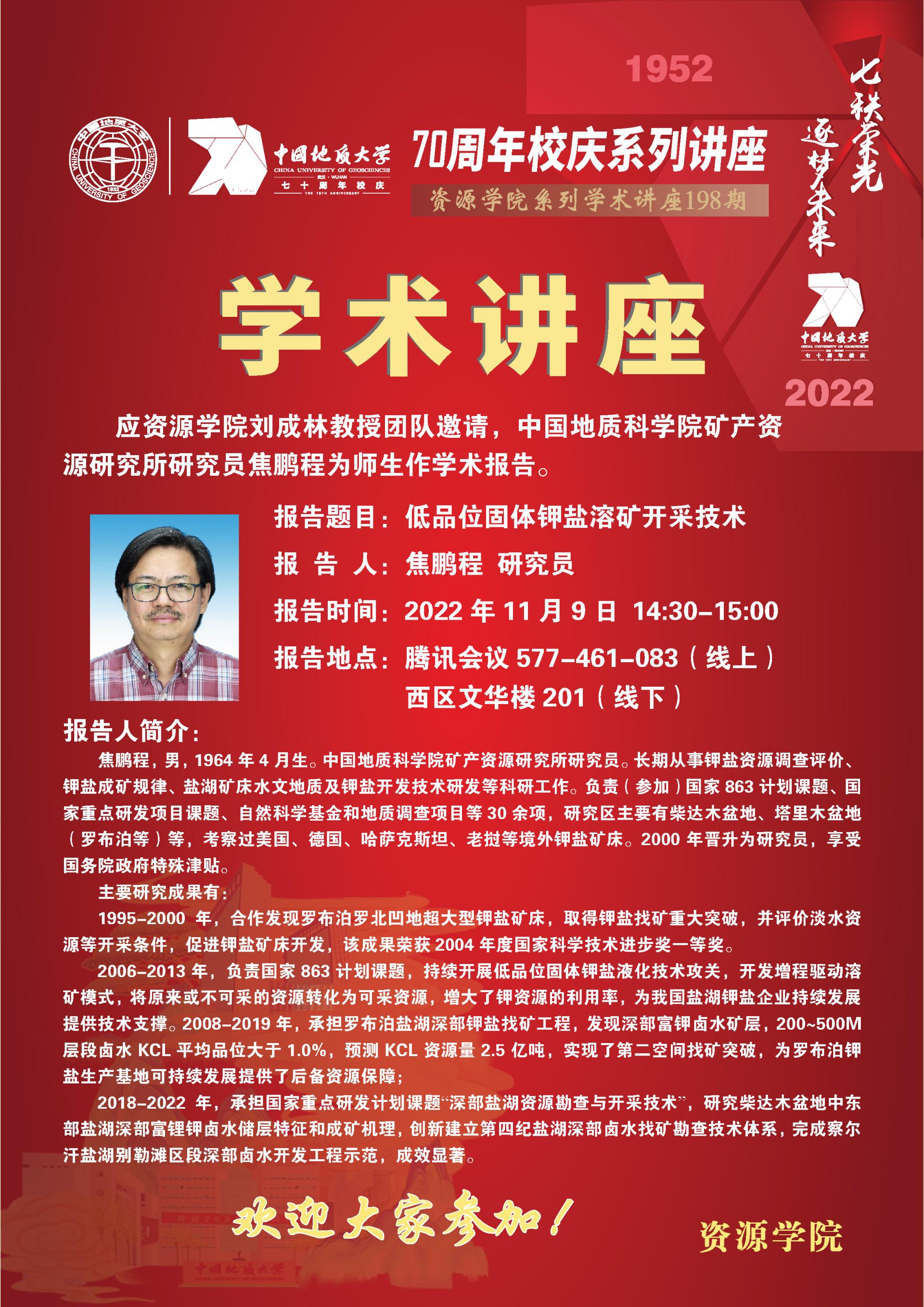 【11月9日】第198期资源学术论坛:焦鹏程学术报告