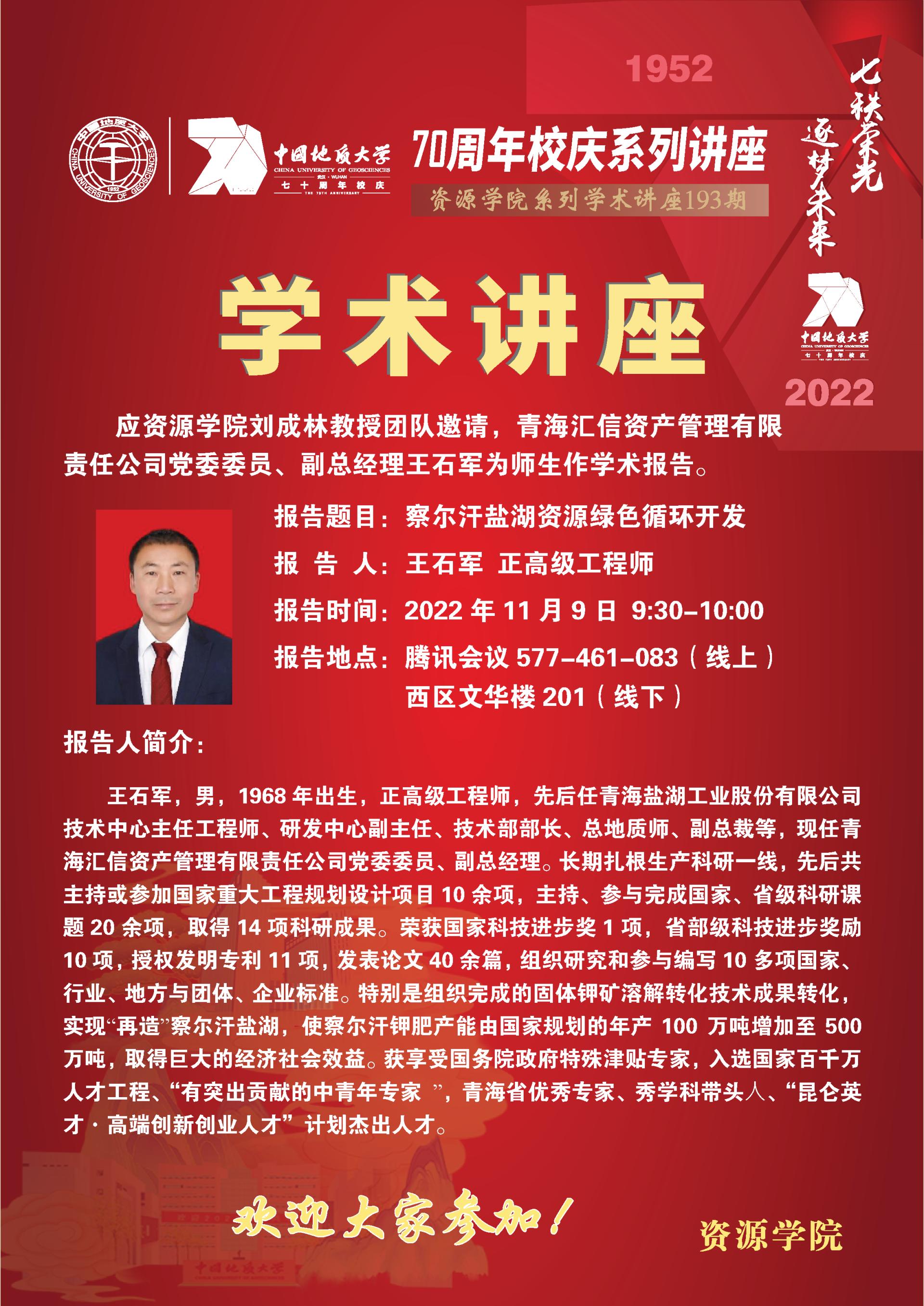 【11月9日】第193期资源学术论坛:王石军学术报告
