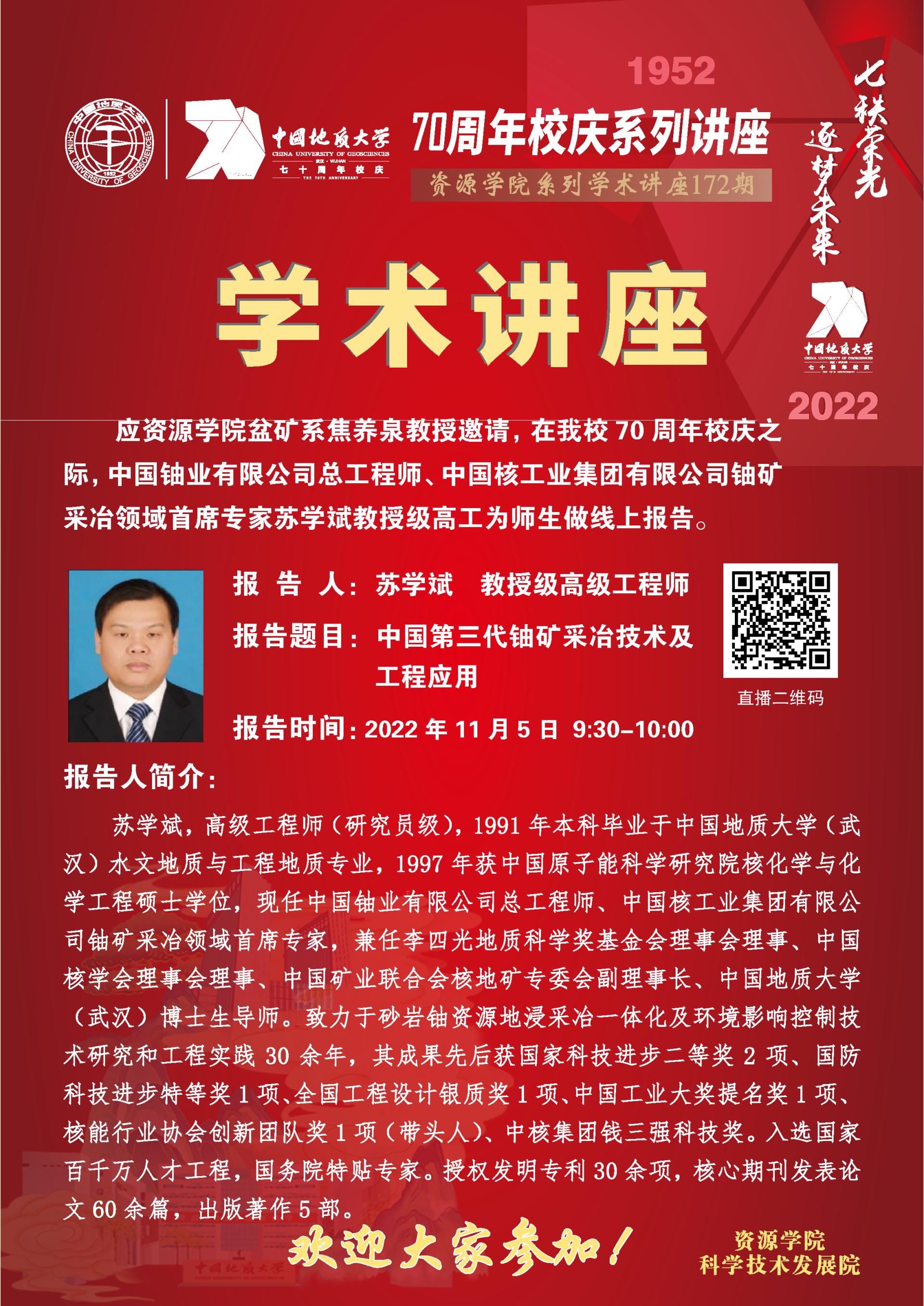 【11月5日】第172期资源学术论坛:苏学斌学术报告