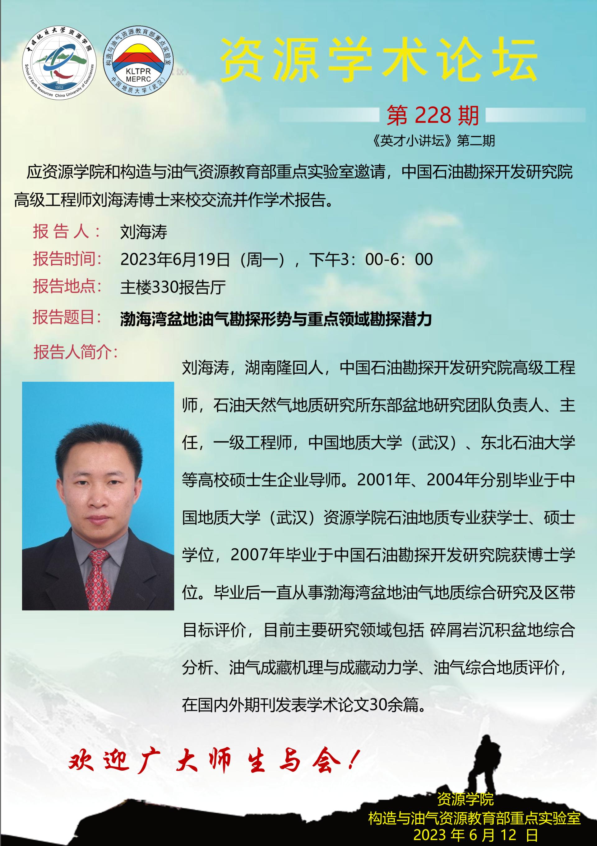 【6月19日】第228期资源学术论坛:刘海涛学术报告