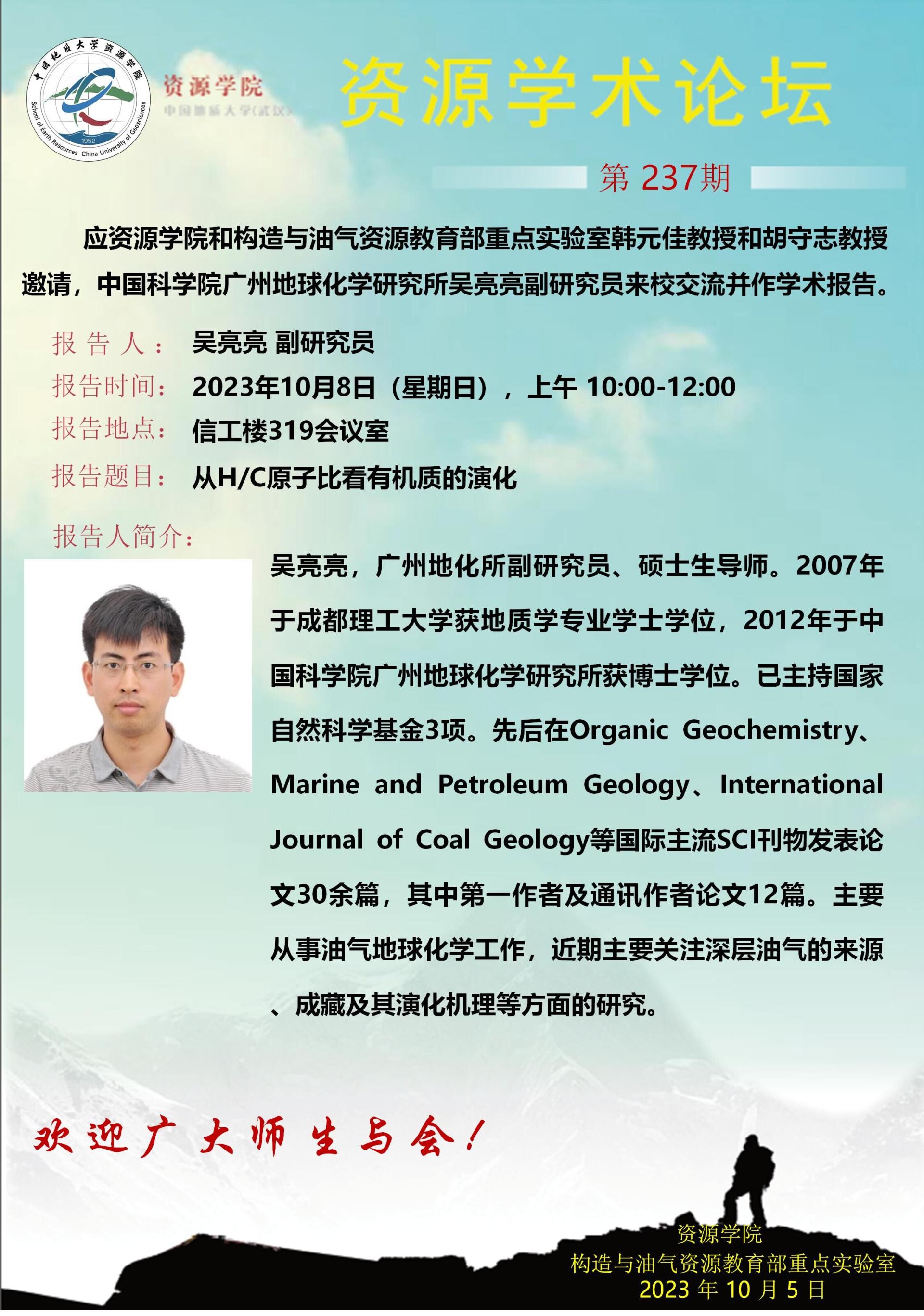 【10月8日】第237期资源学术论坛:吴亮亮学术报告
