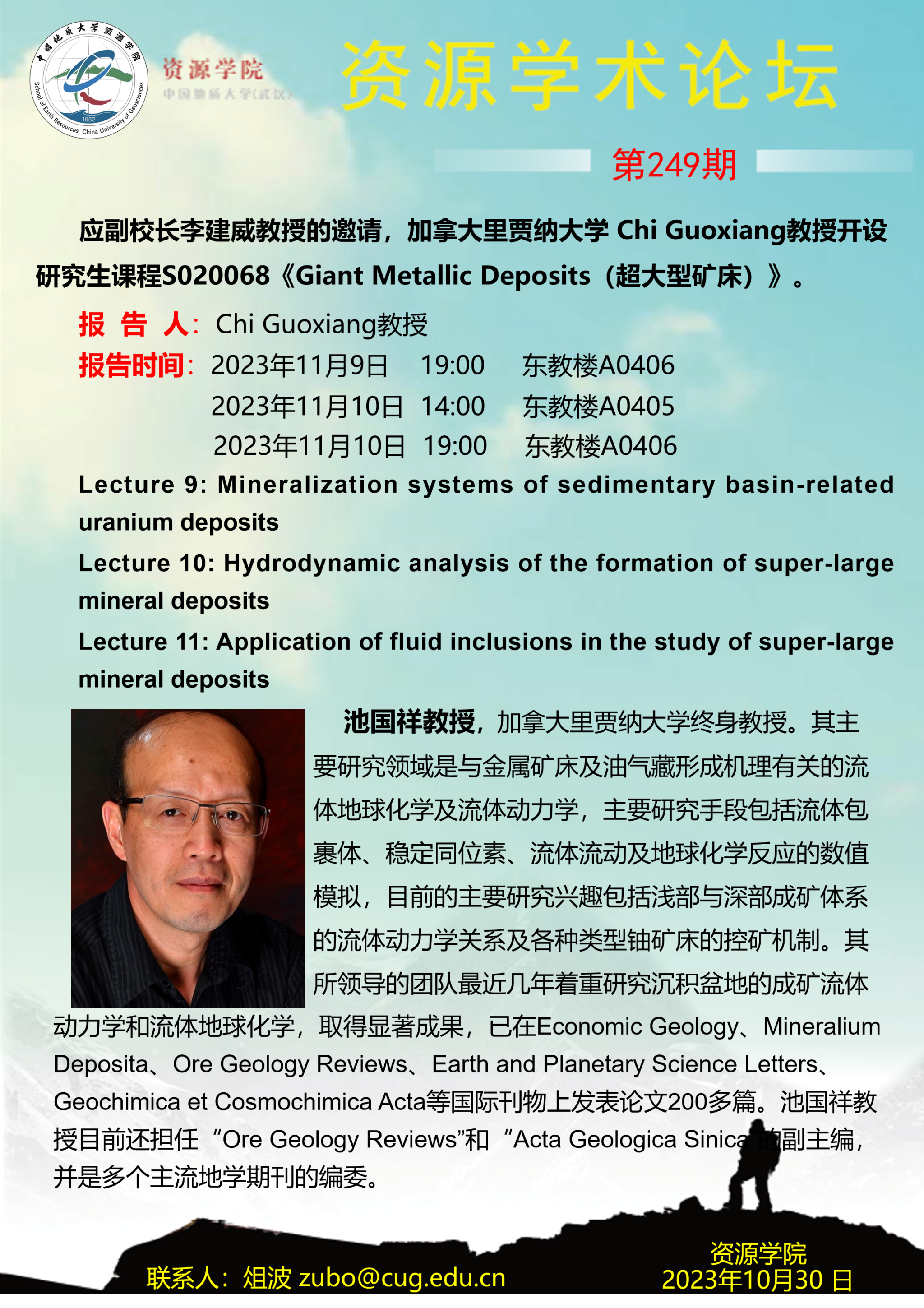 【11月9日-11月10日】第249期资源学术论坛:Chi Guoxiang学术报告
