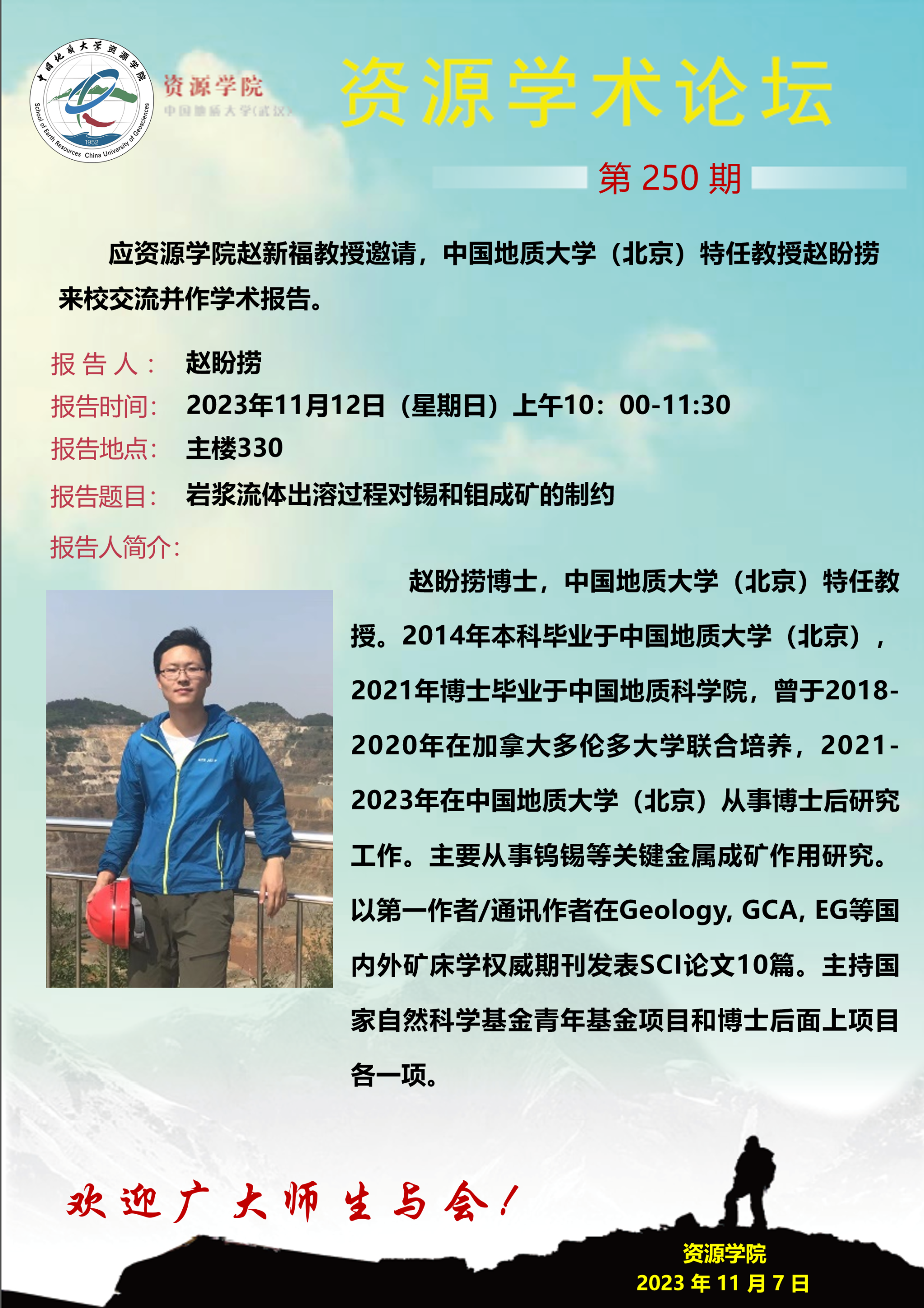 【11月12日】第250期资源学术论坛:赵盼捞学术报告