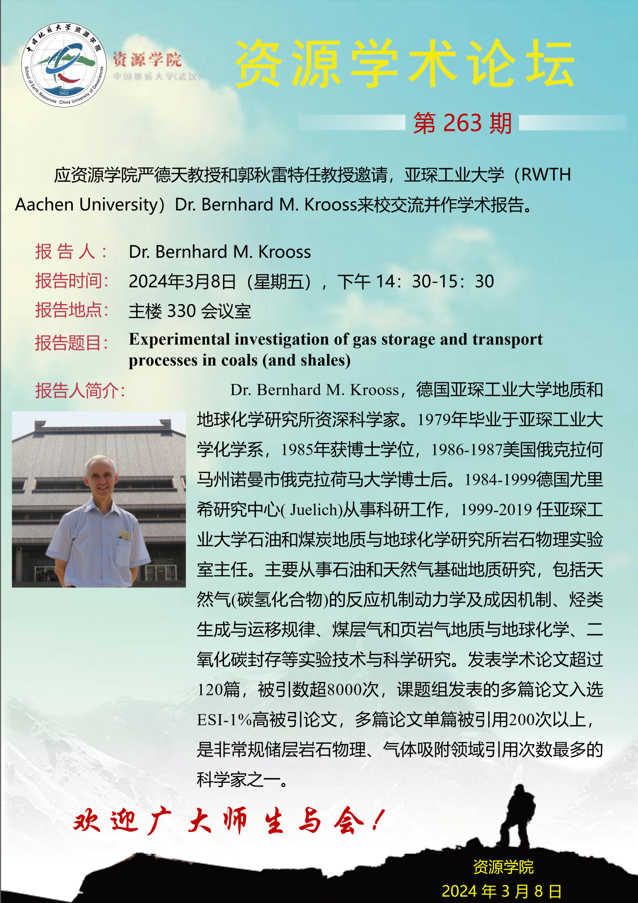 【3月8日】第263期资源学术论坛:Dr.Bernhard M.Krooss学术报告