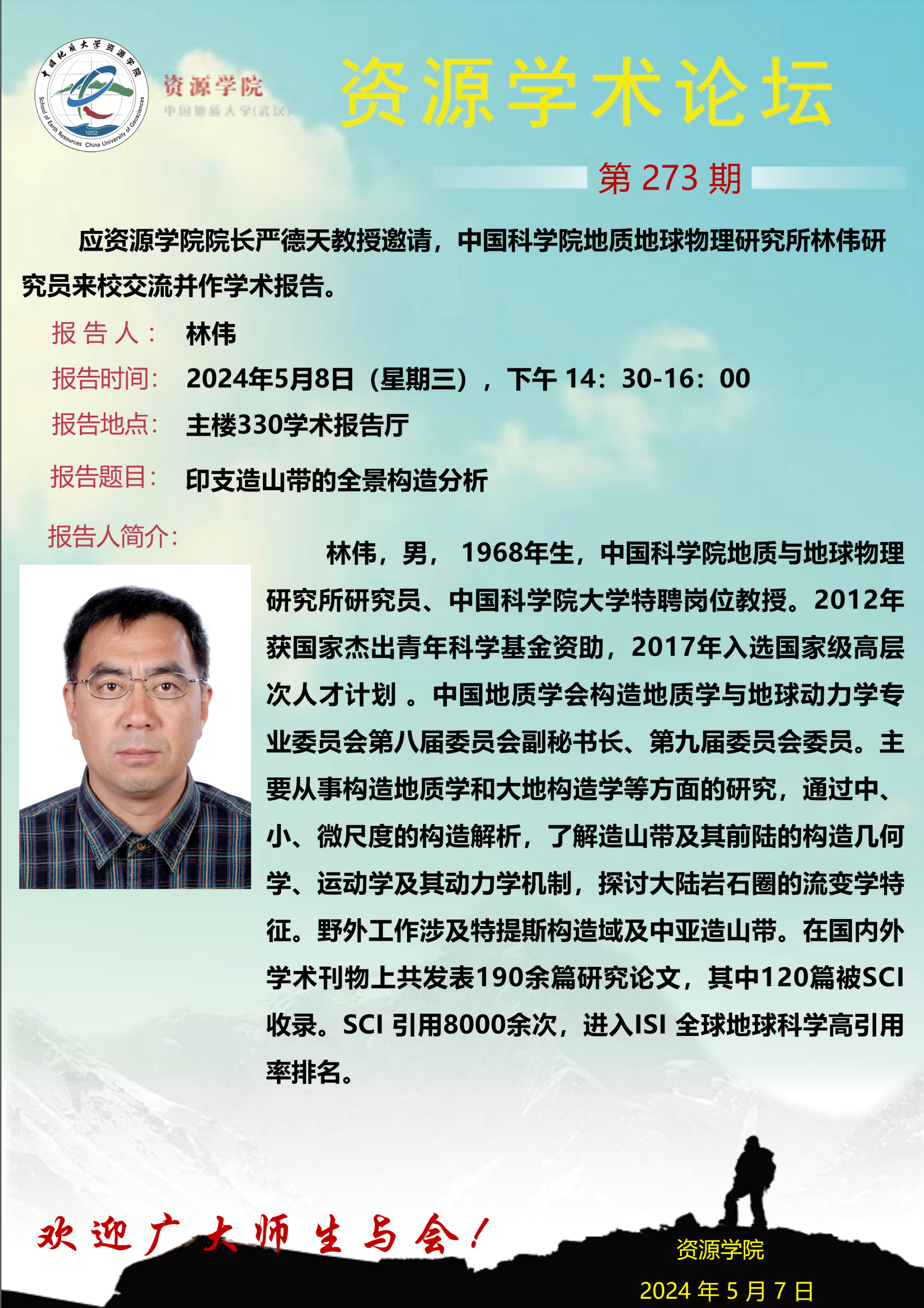 【5月8日】第273期资源学术论坛:林伟学术报告
