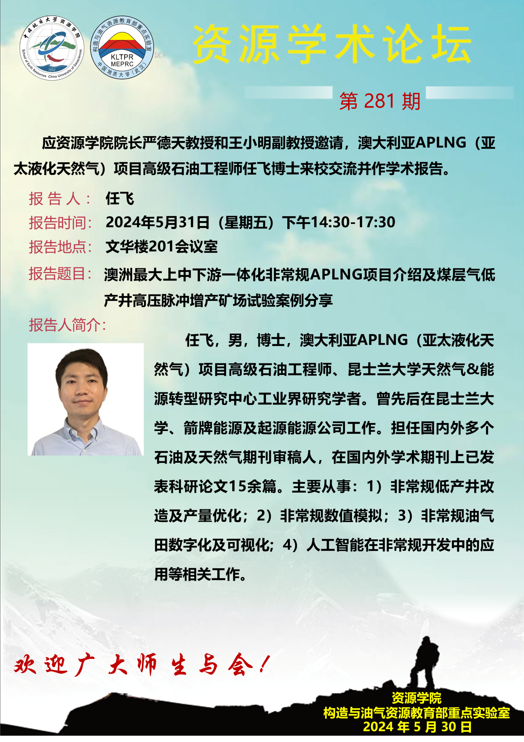 【5月31日】第281期资源学术论坛:任飞学术报告