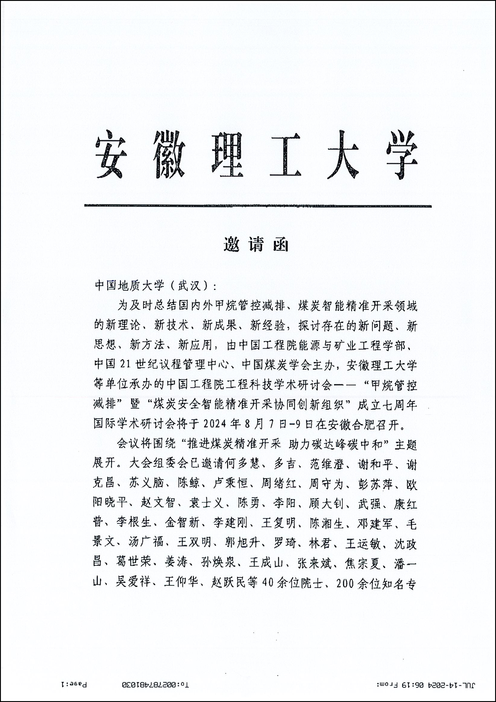 中国工程院工程科技学术研讨会——“甲烷管控减排”暨“煤炭安全智能精准开采协同创新组织”成立七周年国际学术研讨会