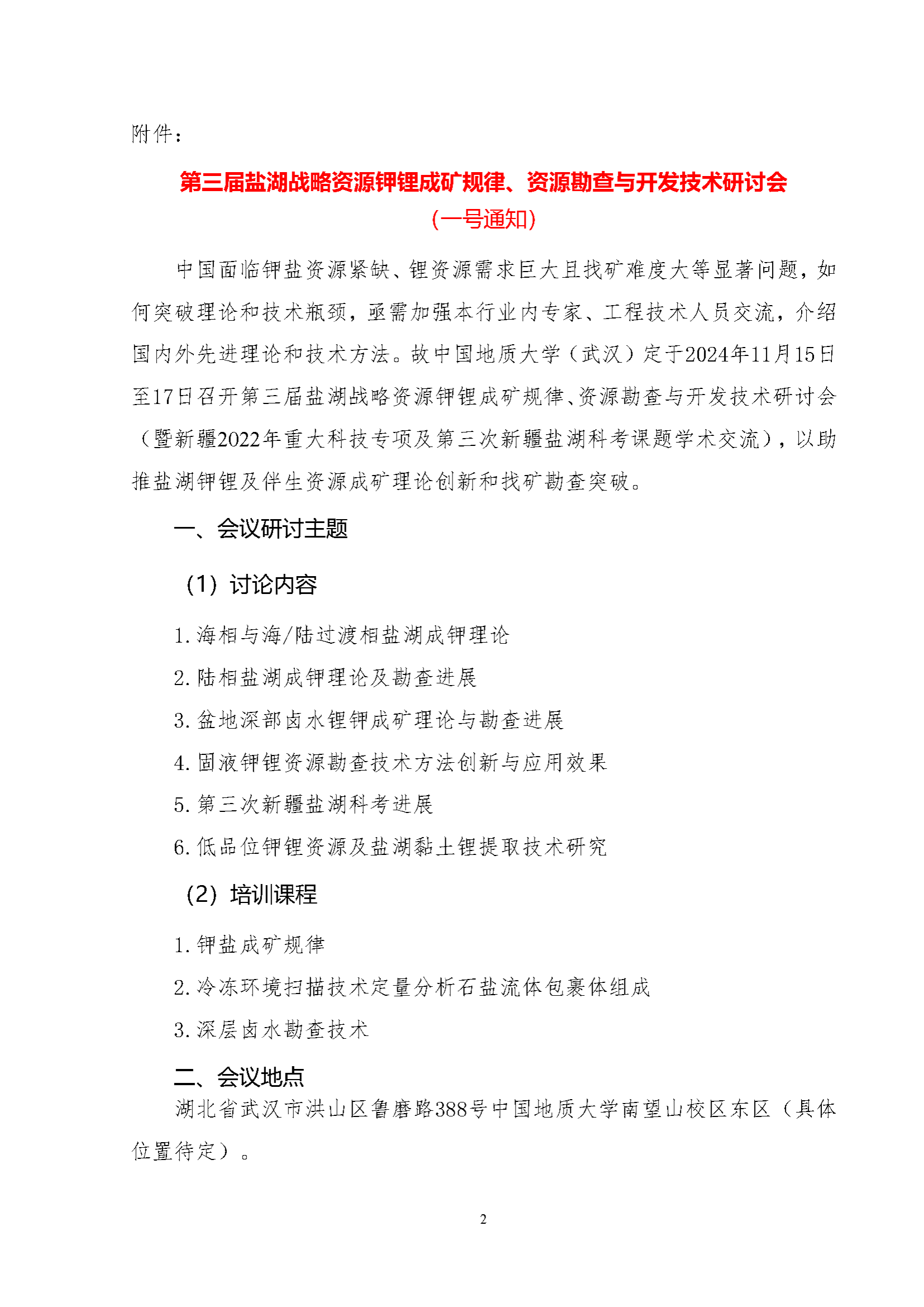 关于召开地大第三届盐湖战略资源钾锂成矿规律、资源勘查与开发技术研讨会(暨新疆2022年重大科技专项及第三次新疆盐湖科考课题学术交流)的通知