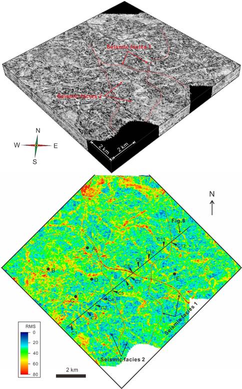 图1 地震地貌和砂岩储层分布(早期低位体系域)