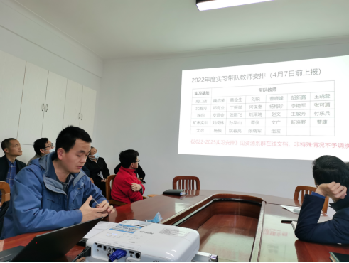 系副主任刘文浩副教授布置全系5年教材出版规划,矿体建模及储量估算、矿石学、矿田构造学等课程将陆续申报学校教学项目并开展教材编写和出版工作;同时对全系2022年度野外地质实习安排、MOOC课程建设等做出安排。吕新彪教授进一步对教材建设、信息化教学、虚拟仿真教学和课程思政等方面提出了具体建议。副主任张金阳教授通报了研究生招生与复试情况,要求大家积极参与招生宣传。党支部副书记、副主任李占轲副教授介绍了全系2022年度实验室建设的工作重点。