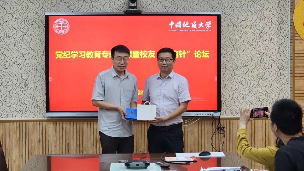 (通讯员 叶青)6月29日,石油地质系教师党支部联合依托导学团队建立的油气地化-成藏研究生党支部、资源勘查工程021214班全体学生,组织开展党纪学习教育专题学习会暨校友“指南针”论坛。武汉市江汉区党委巡察办副主任孟汉青校友应邀作主题报告,学院党委副书记谭文伦参加会议。石油地质系党支部书记胡守志主持会议。
