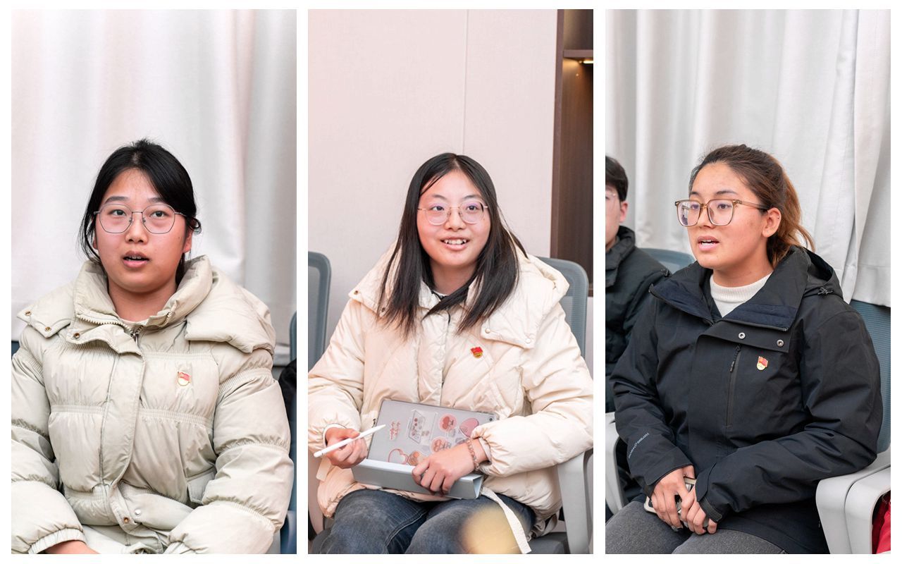 汪再奇,谭文伦,彭鑫分别为2022级本科生新发展党员颁发政治生日卡。