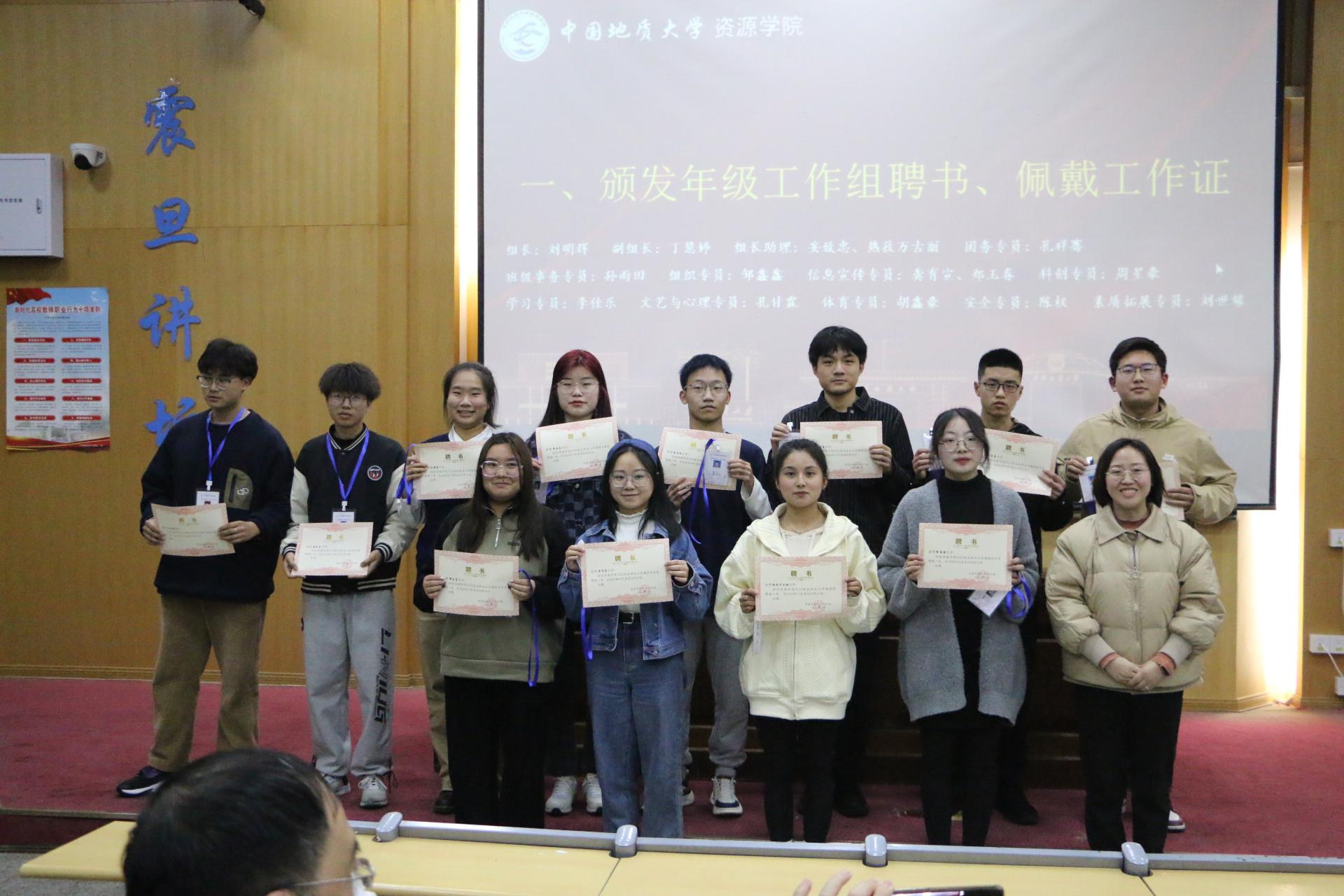 刘明辉为年级工作组成员颁发聘书、工作证。