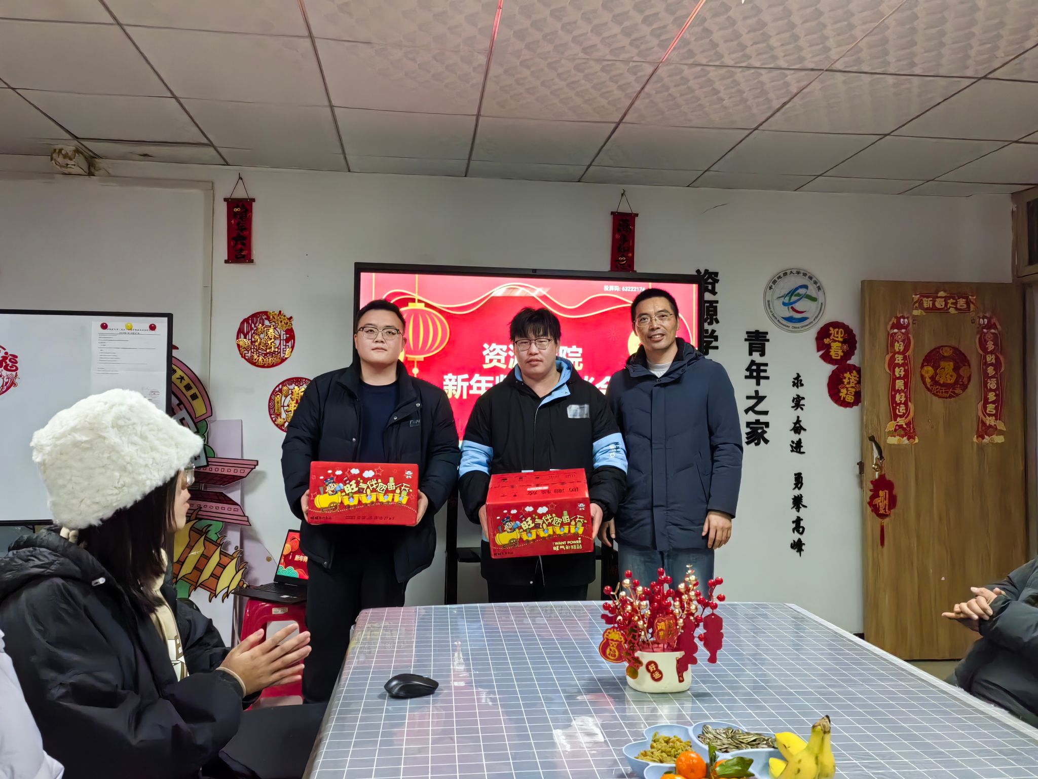 高复阳、严德天了解同学们校园生活情况和考试月复习备考进展,并致以新年祝福,希望同学们以崭新、积极的态度投入学习中,刻苦钻研,求实进取,用实际行动开启新的精彩篇章。随后,院领导为荣获2023年校级“百佳宿舍”和师生原创春联作品获奖个人、集体颁发奖品。