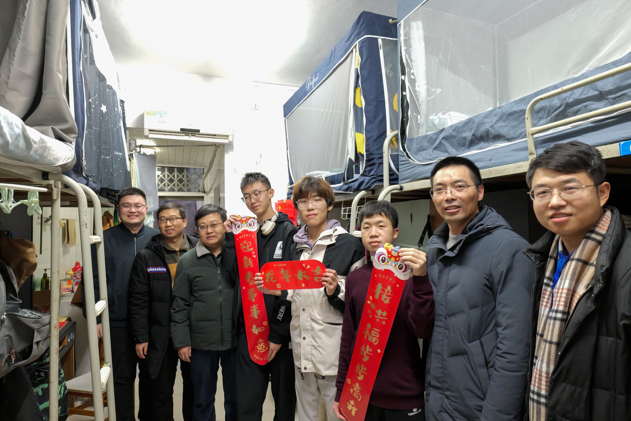 会后,高复阳、严德天一行走进宿舍,为同学们送“福”。
