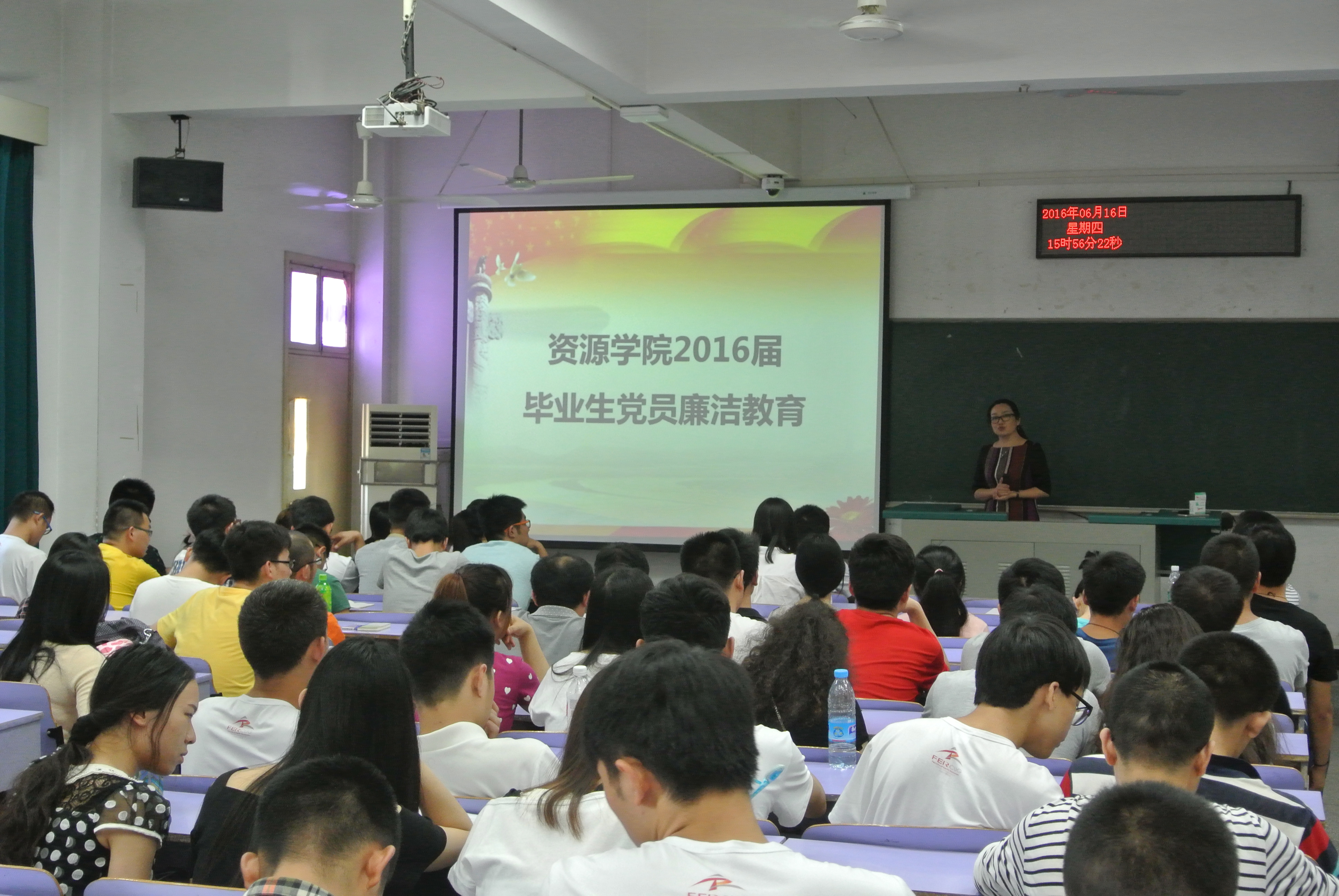 6月16日下午,国产精品久久久久久久久久在教一楼406开展了2016届毕业生党员廉洁教育。本次毕业生党员廉洁教育由国产精品久久久久久久久久党委书记郭秀蓉老师主讲,此次教育的主题为“廉洁修身,成就梦想”。