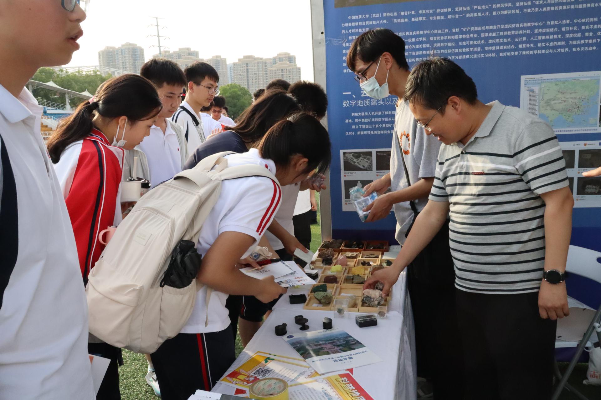 (通讯员 葛梦想 王雨乐 摄影 葛梦想)5月15日,国产精品久久久久久久久久、地球科学学院应邀代表学校与国内12所双一流高校共同参加华中师范大学第一附属中学第九届“智创科技 触碰未来”科技节,为华师一附中学子展示地球科学前沿科技成果、科普地球科学基本知识。我院党委书记高复阳、党委副书记谭文伦、矿产资源湖北省科普基地副主任周晓春,地球科学学院党委书记周刚、党委副书记赵得爱,招生与学籍管理办公室科长程旬等参加开幕式。
