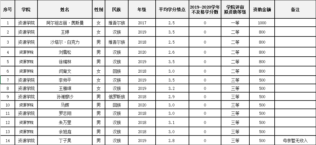 经过学院奖助学金评审委员会于2021年3月25日于主楼330学术报告厅进行了资助金评审,现将最终评定结果如下: