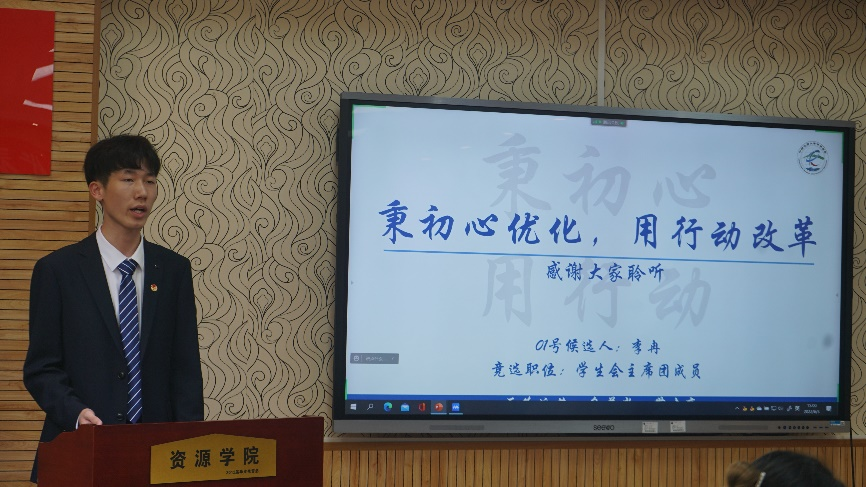 刘明辉致闭幕辞。她希望全体代表以及全体同学以这次大会的精神为动力,树立起强烈的历史责任感,发扬“求实奋进,勇攀高峰”的院风学风,践行“求是创新,厚德奉献”的资源人价值观,为保障国家资源能源安全和实现中华民族伟大复兴的中国梦贡献青春力量。