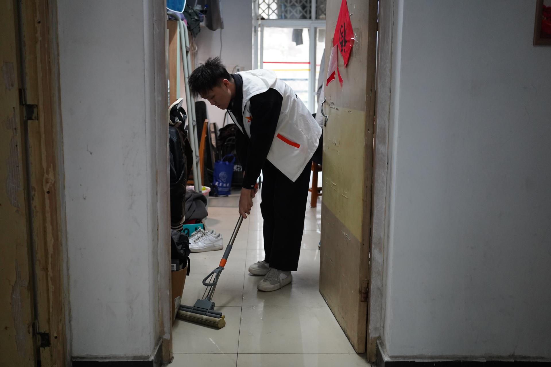 活动在热烈的掌声中拉开帷幕,同学们立刻投入到宿舍清扫工作中。清扫完成后,参与指导的公寓工作人员依次进入西区56栋、51栋、63栋参加活动的宿舍,对每间宿舍清理情况进行检查,针对宿舍存在的问题提出合理有效的指导意见,并耐心进行现场示范。从洗浴间到内阳台,从地面角落打扫到窗户擦拭,从细小的书本摆放到整体的空间布局,工作人员指导地细致入微,指出了内务有效管理和空间有效利用的相关注意细节,帮助同学们合理调整。最后根据评分细则,评出清洁等级。