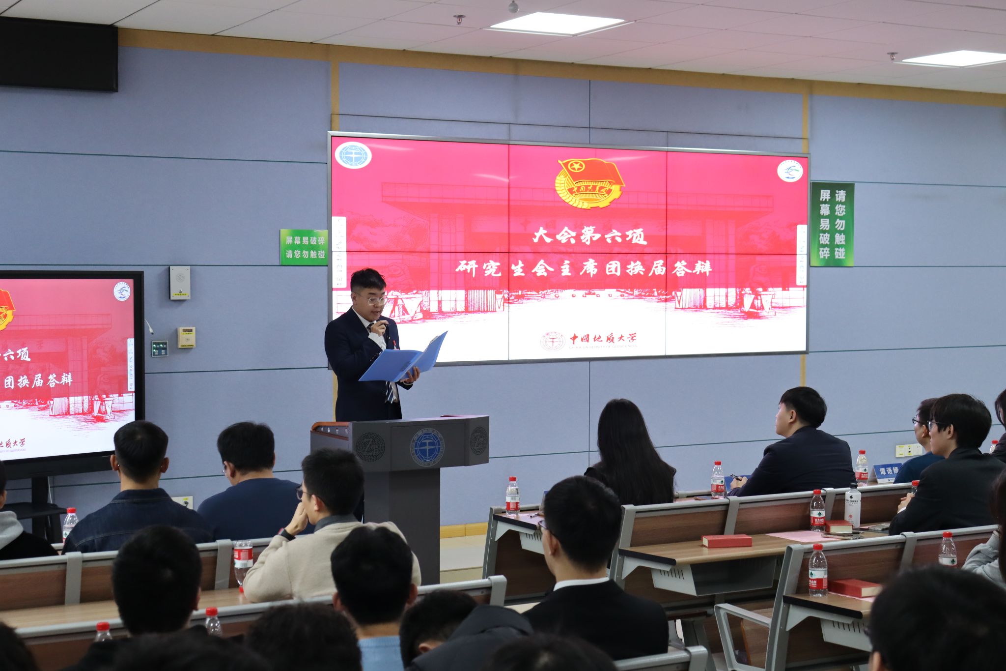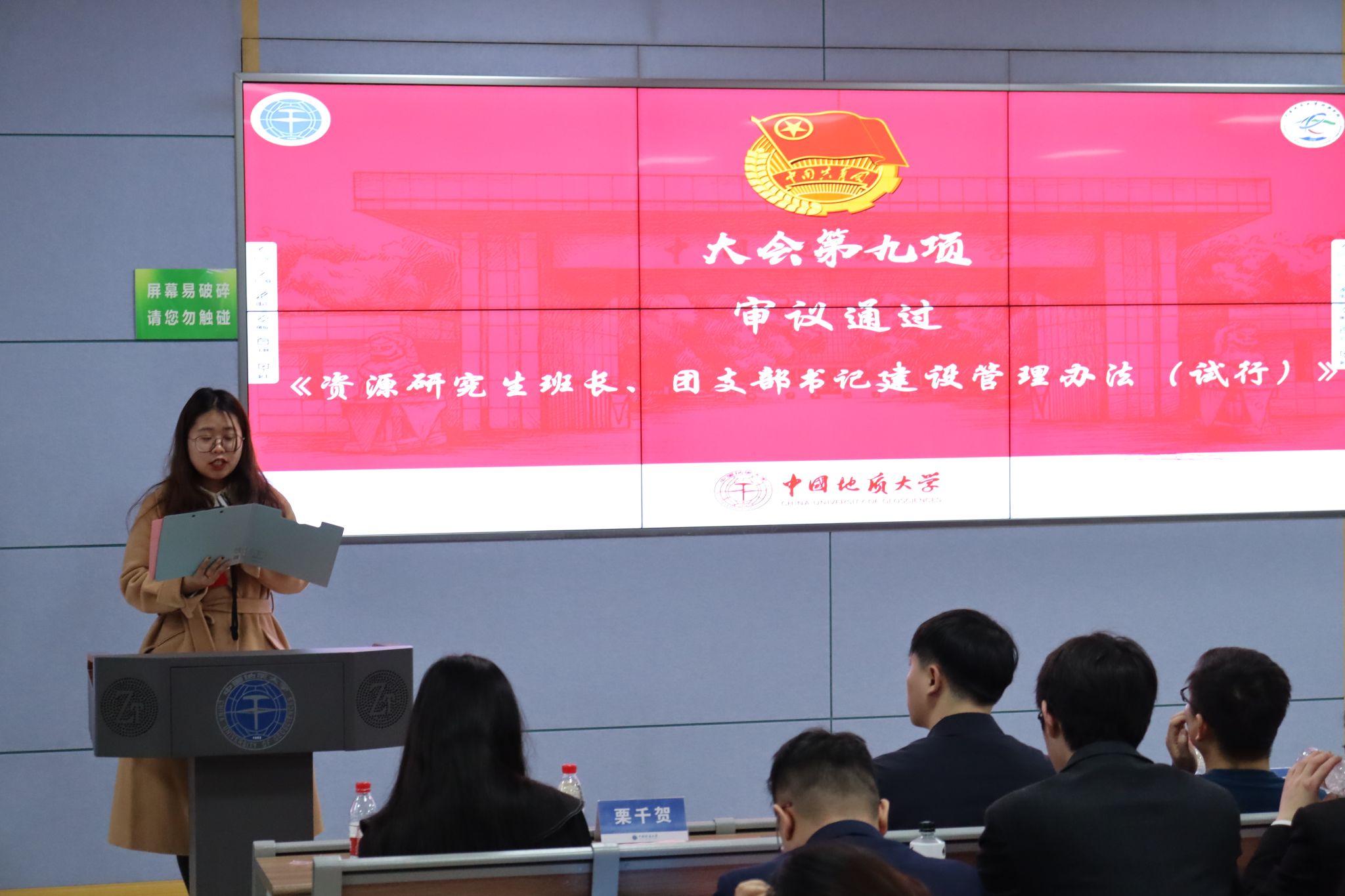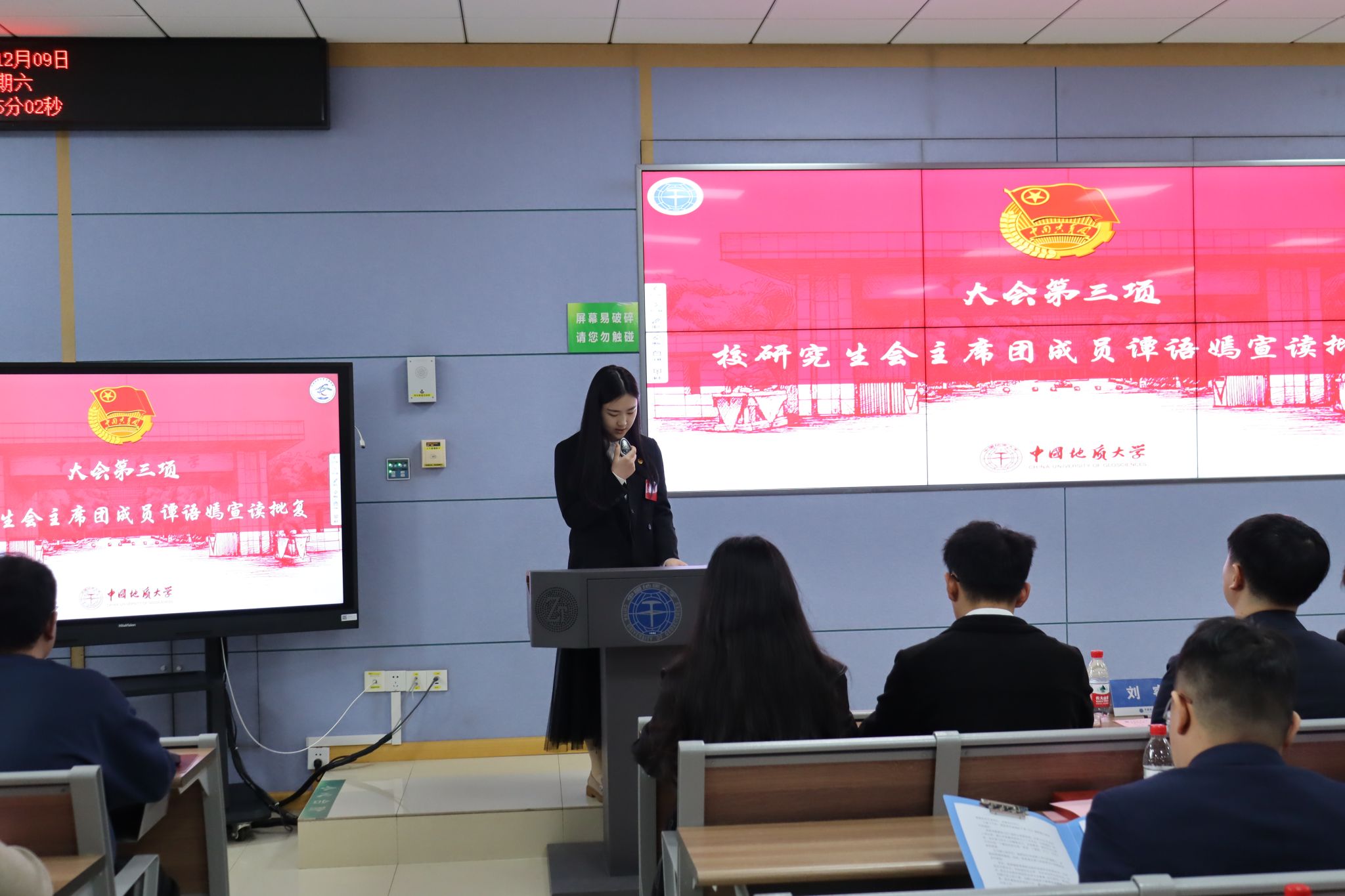 谭语嫣宣读《关于同意召开中国地质大学(武汉)国产精品久久久久久久久久第十二次研究生代表大会的批复》。
