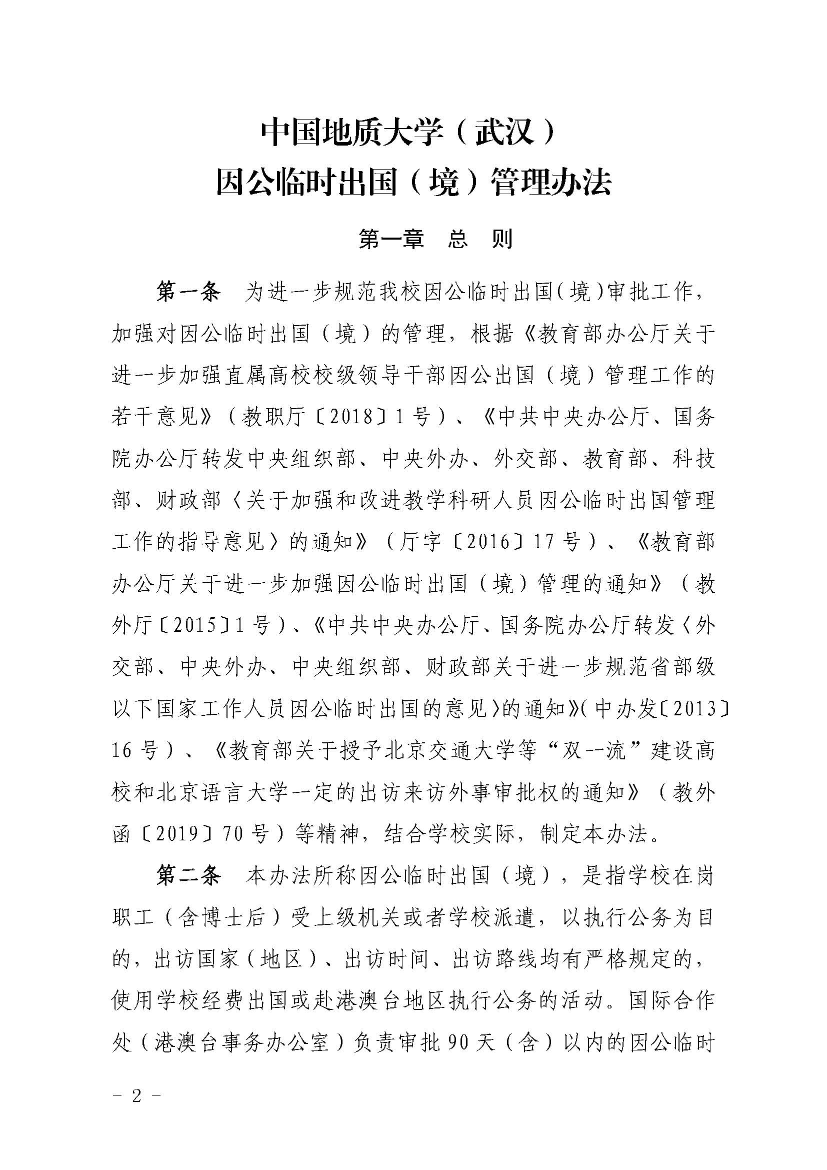 中国地质大学(武汉)因公临时出国(境)管理办法