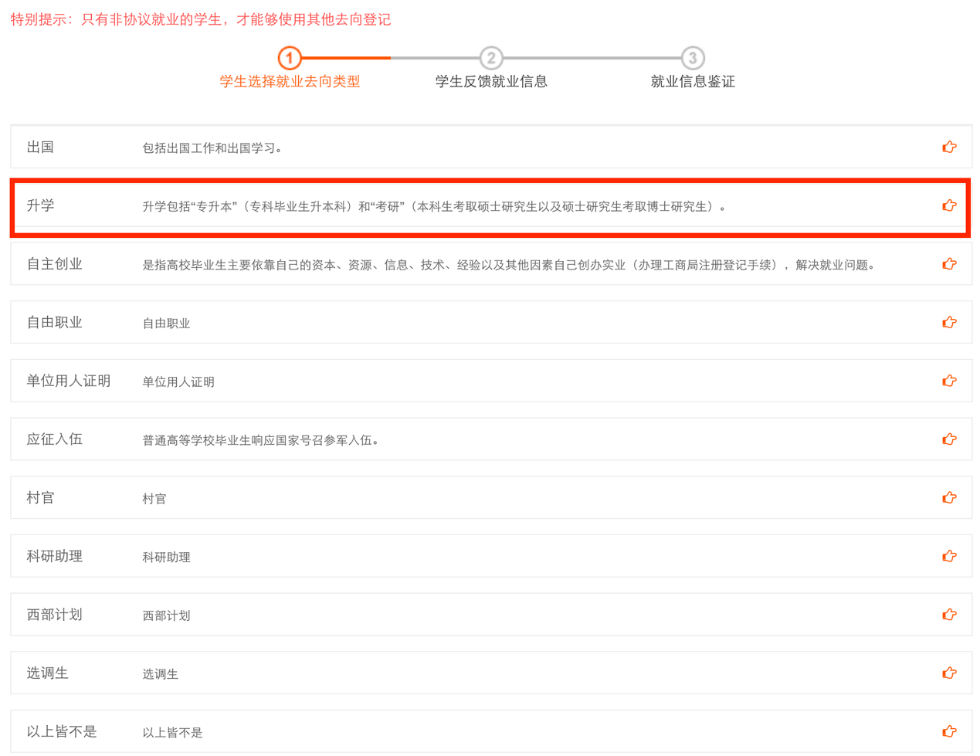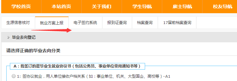 此类方式适用于6月10日之前尚未确定毕业去向的毕业生。学生登陆后按照毕业去向填写“待就业”,档案建议回原籍。