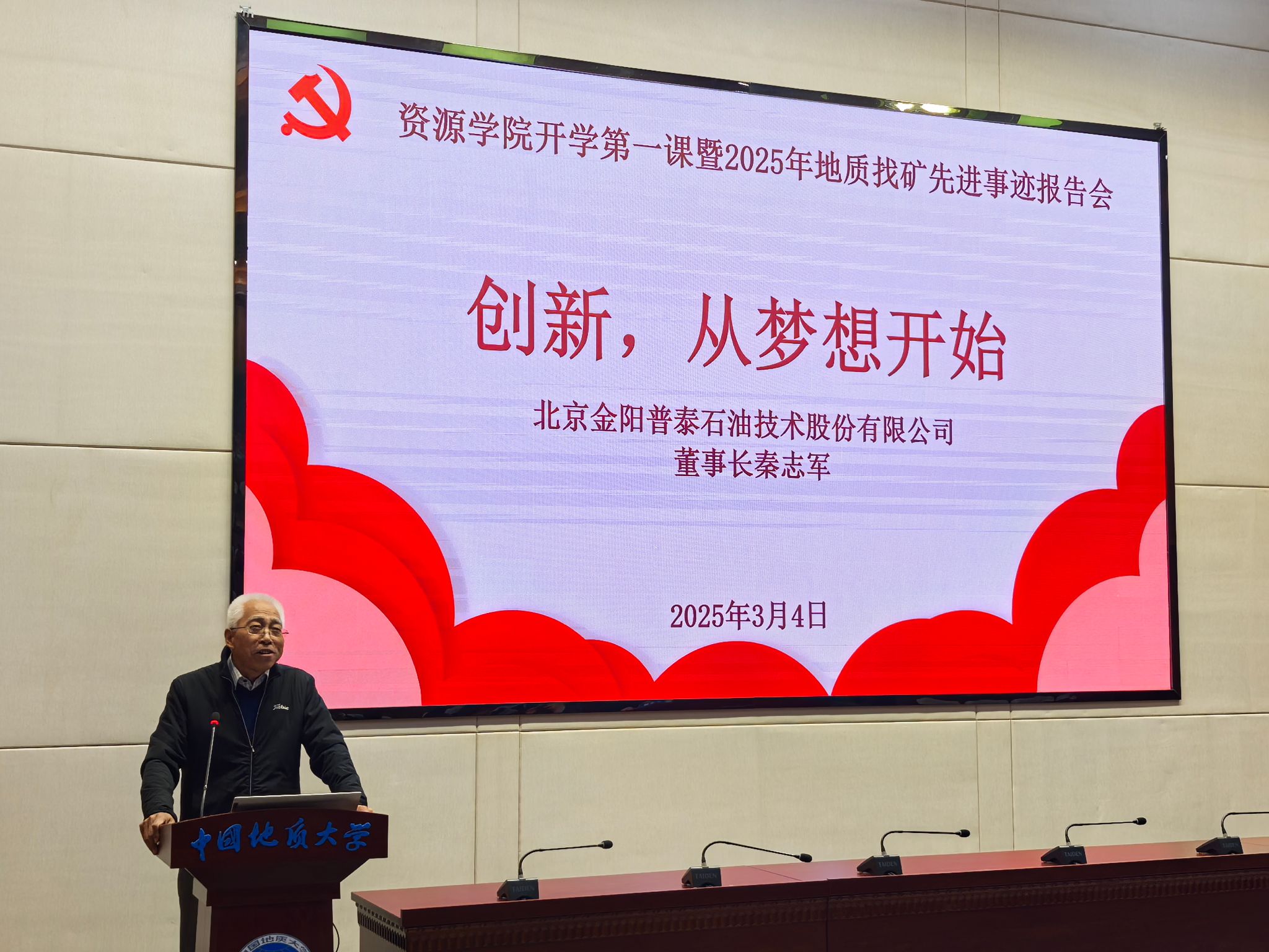 3月4日,学院举行“开学第一课暨地质找矿先进事迹报告会”。北京金阳普泰石油技术股份有限公司董事长秦志军、总经理袁钢辉,公司武汉代表胡甫强、王亚婧,学校党委学生工作部部长朱丹,国产精品久久久久久久久久党委书记汪再奇,党委副书记谭文伦,副院长李占轲,教师代表谢丛姣参加,举行了金阳普泰创新奖学金颁发仪式、校外兼职辅导员聘任仪式。秦志军在开学第一课中讲到,创新的源头在于梦想,而梦想的实现离不开切实的行动、扎实的学习和长久的坚持。他鼓励同学们要燃起梦想的火苗,敢想敢干、巧干实干,不畏艰难、不怕失败,在不断的实践中勇于创新,敢于追逐更加辉煌的梦想!