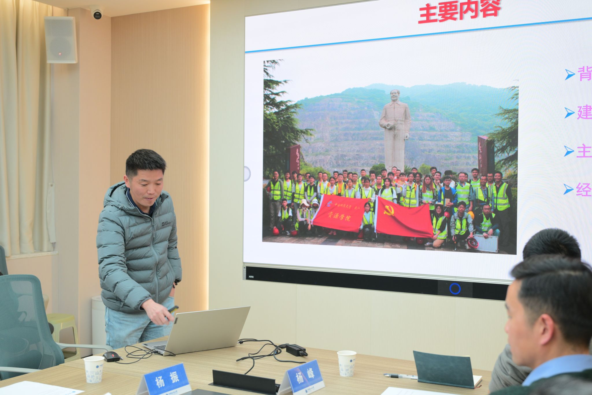 资源科学与工程系副教授杨振介绍了大冶铁矿实习基地建设经验。
