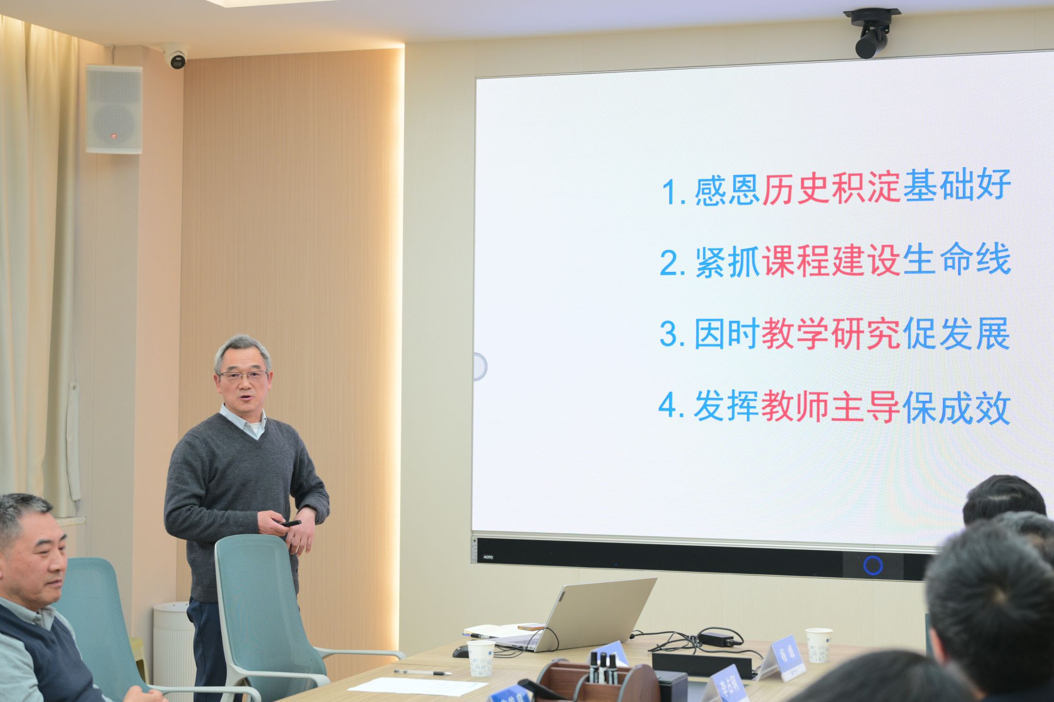 他强调,全院上下要弘扬学院优良办学传统,高度重视本科人才培养工作,坚持四个面向,强化产教融合、校企合作,紧紧抓住以AI技术为代表的新一轮产业变革和科技革命,全力推动专业建设、学科设置、教材建设、课程建设、师资队伍建设等各方面工作再上新台阶。
