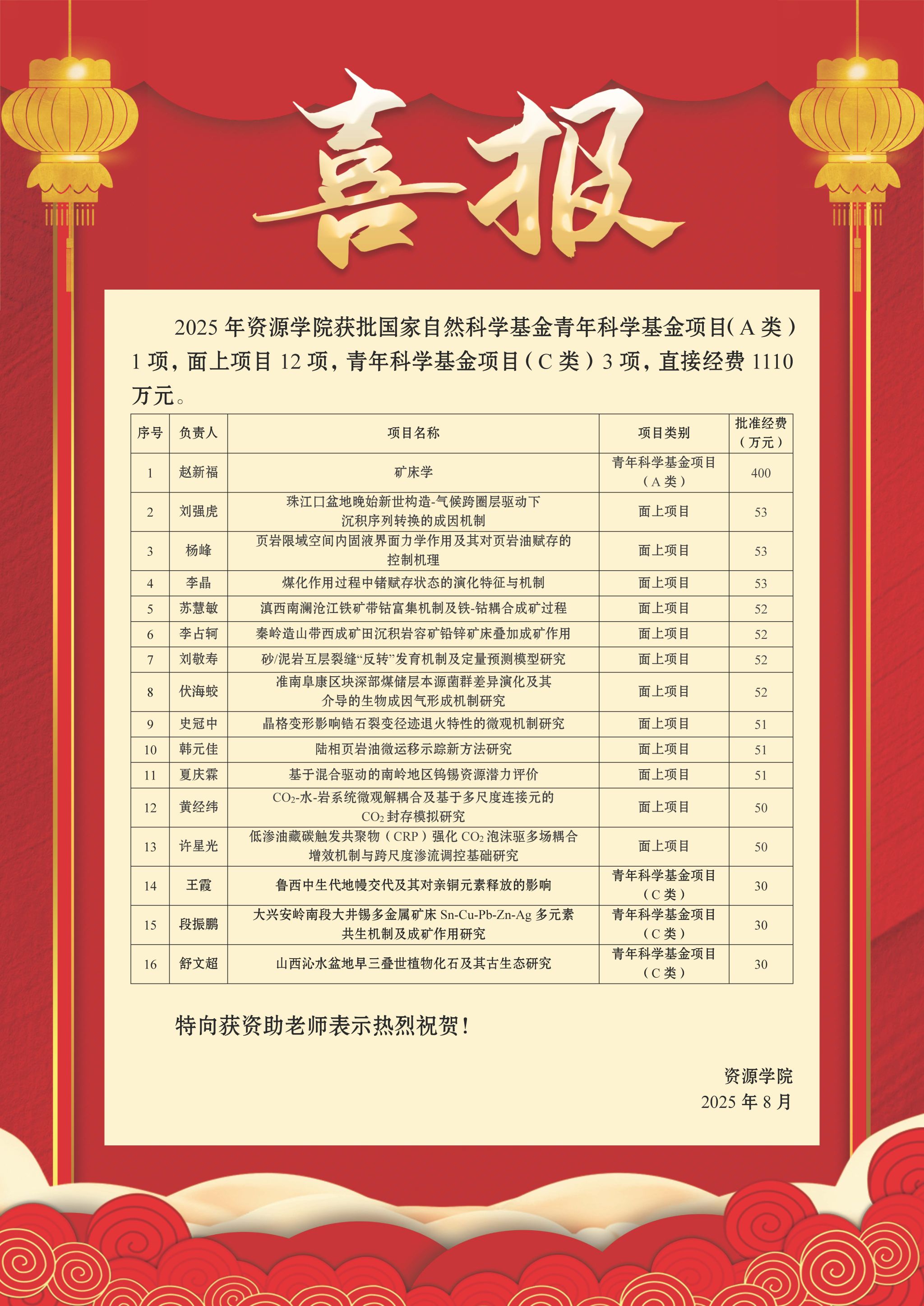 8月27日,国家自然科学基金委员会公布了2025年集中接收期项目评审结果,国产精品久久久久久久久久获批资助项目共16项。其中,青年科学基金项目(A类)1项,面上项目12项,青年科学基金项目(C类)3项。项目直接经费达1110万元,较2024年增长63.2%,经费数量位居全校第二。