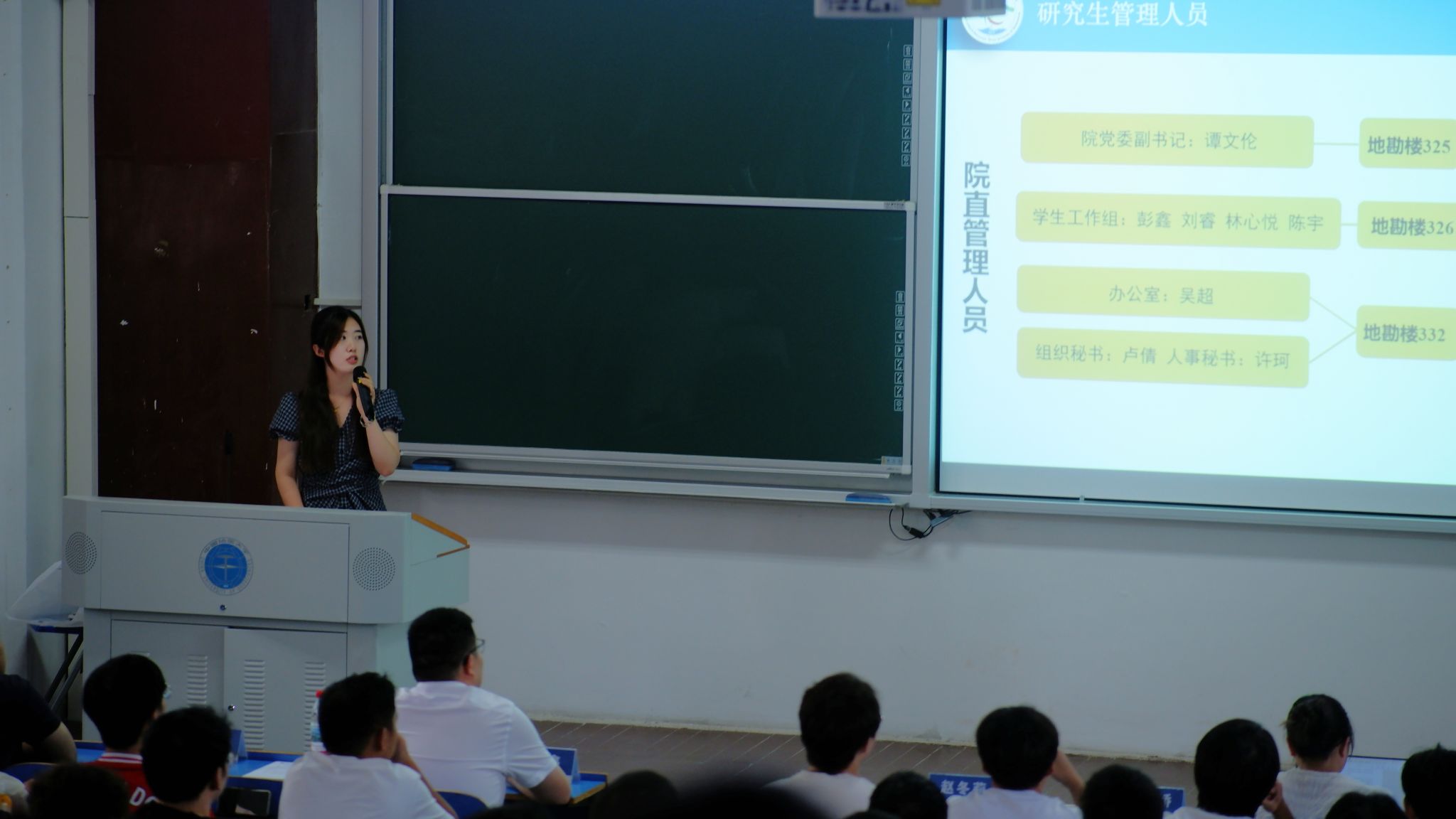 研究生会主席施博琼向新生们介绍了学院研究生会的组织架构、主要活动及成就。他欢迎新生们加入研究生会,积极参与各类学术、文体和社会实践活动,锻炼自己的组织协调能力和团队合作精神。