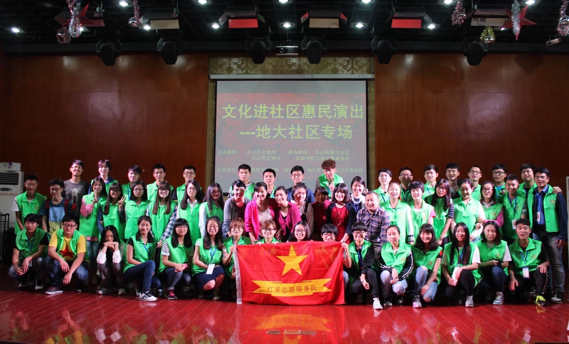 下午2点半,金婚老人们胸前戴着红花,手拉着手,在志愿者的搀扶和陪同下喜气洋洋的迈进了工会演播厅大门,随着民族乐器演奏《战士舞曲》的开始,联欢会拉开帷幕。除志愿者同学为此次联合会精心准备的节目外,其他节目都是由老人们自发建立的文艺组织进行表演,《情醉黄鹤楼》节目中,12位平均年龄60岁的退休女老师翩然地舞动,优雅地变换队形,一颦一笑丝毫不似花甲老人。一曲《刘海砍樵》节目中更是唱出了老人们的活力,赢得阵阵掌声。表演《刘海砍樵》的盛宏模老人今年已经80岁了,尽管高寿,但盛老师依然精气神十足,不仅歌唱的好,闲暇时还会带领地大社区的居民跳广场舞一起锻炼身体。谈到自己面对生活的心态时,盛老师引用了我国著名哲学家冯友兰先生的话:“微笑着面对生,优雅的面对老,从容的面对死。”在此基础上,盛老师又添加了自己的一句感悟“乐观的面对病”,这样,人生四大常事——生老病死就全都齐了。