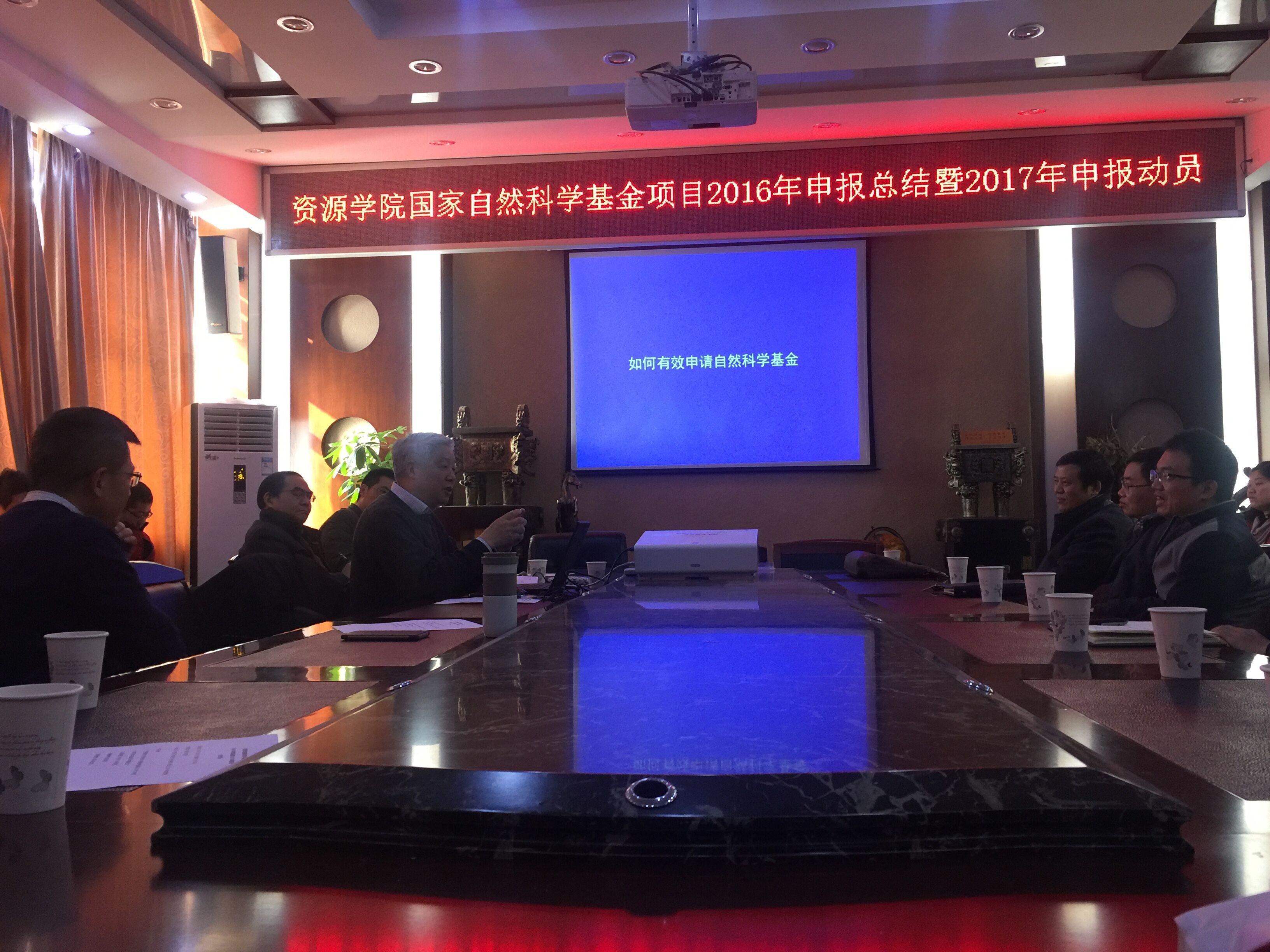 严德天从全委概况、校院概况、2017年安排三个方面进行讲述。2016年我院在国家自然科学基金项目的申报中取得了优异成绩,学院共获资助23项,位列全校第一;尤其是郝芳院士申报的“页岩气差异富集机理”项目,实现了我校在重大项目上零的突破。同时,博士后已成长为我院基金申请的重要力量,2016申报资助成功率为56%,要求各系所要引起重视。最后,就各系所2017年申报量及申报节点做出安排。
