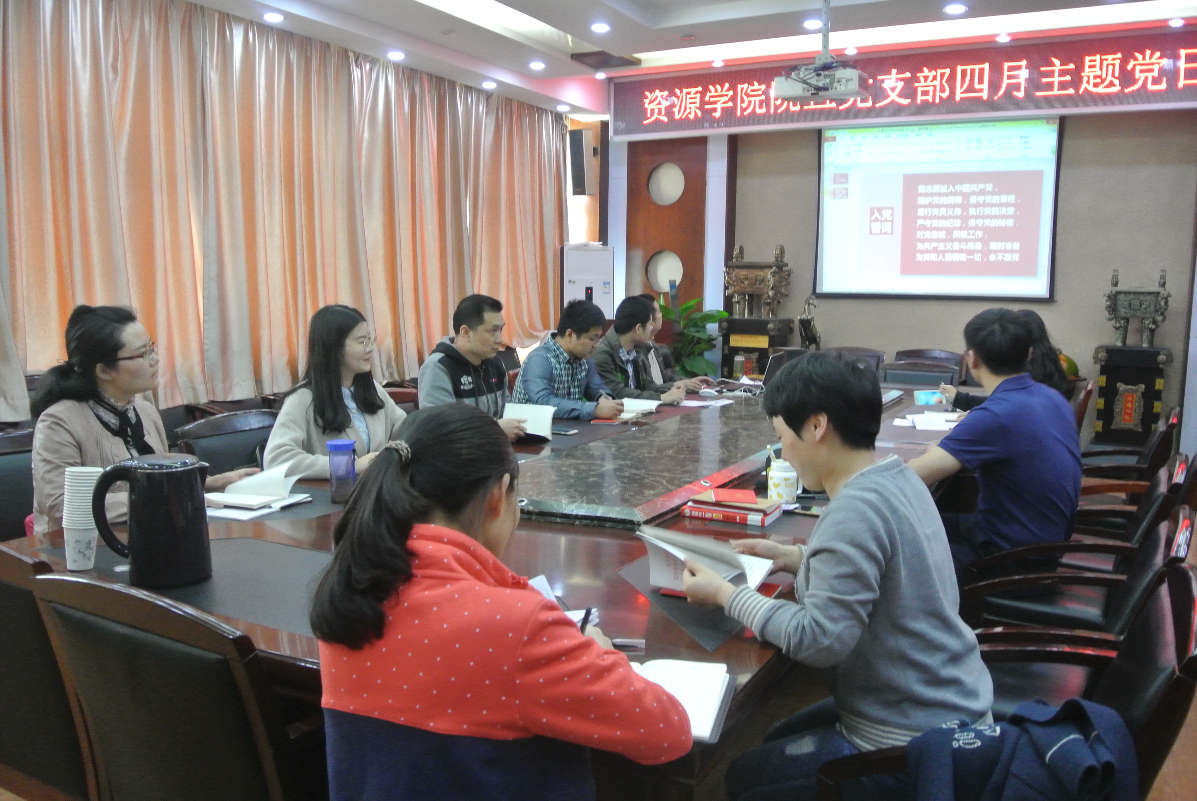 其中,石油工程系党支部将四月定为支部学习月,在对党建工作调研检查问题清单汇总学习、检查的基础上,重点学习“两会”相关精神及《普通高等学校学生党建工作标准》,并结合本支部存在问题提出相应的整改措施。同时,该支部积极将党的学习与生活、工作实际相结合,不仅组织支部成员结合本月热播电视剧《人民的名义》进行交流讨论,还积极将党日活动与第一届地大·东湖油气资源前沿科技论坛国际会议的举行相结合,将政治学习与学术讨论积极结合,丰富了主题党日活动的内涵。