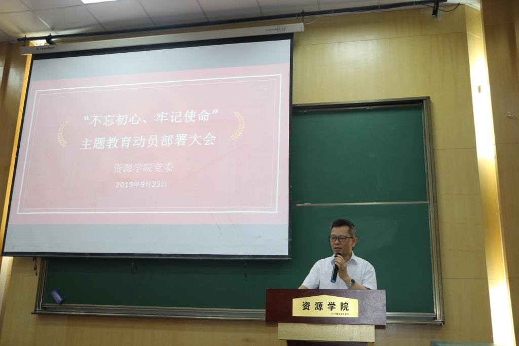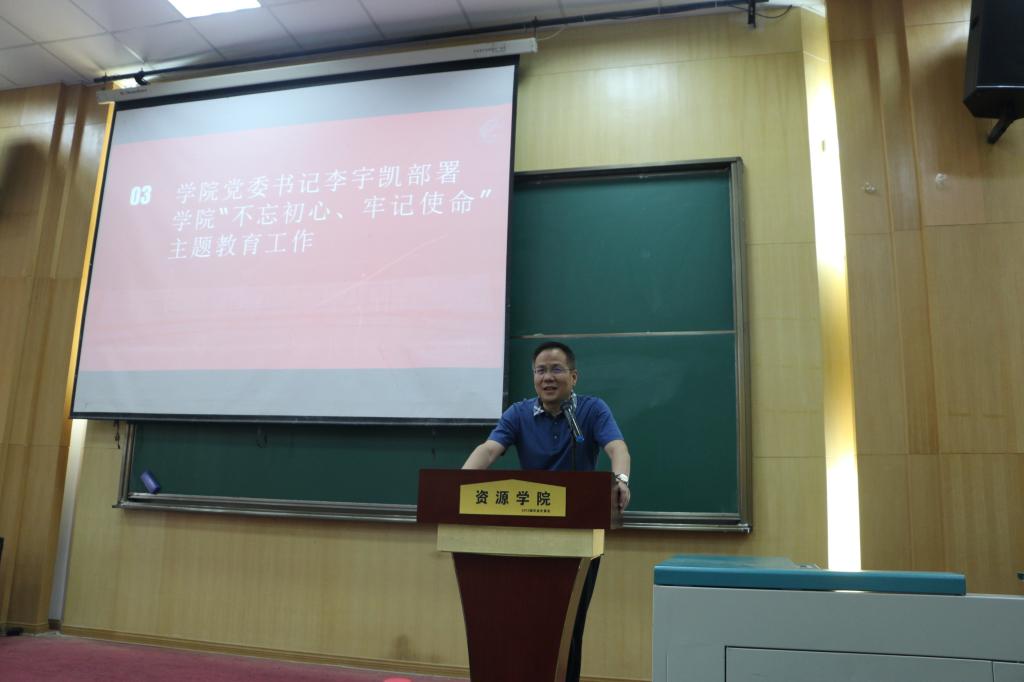 在庄严的国歌声和嘹亮的入党宣誓中,大会正式开始。院党委书记李宇凯从学习教育、调查研究、检视问题、整改落实几方面详细解读我院“不忘初心、牢记使命”主题教育工作方案,对学院领导班子和基层教工学生党支部提出具体要求: