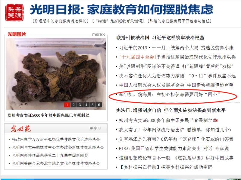 我院党委书记李宇凯撰写的文章《守初心担使命需要用好“四心”》继在《中国地质大学报》刊登后,12月5日又得到光明网首页首屏推送和全网转发。