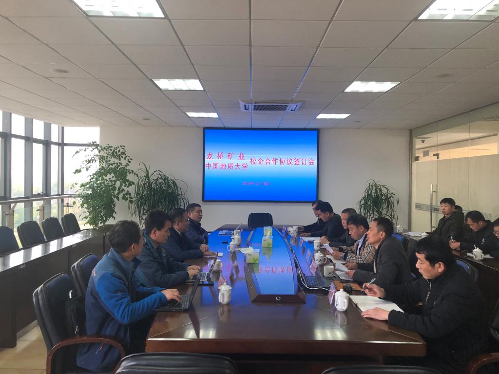 12月30日下午,我院与安徽省庐江龙桥矿业有限公司(以下简称龙桥矿业)产学研合作签约仪式在龙桥矿业举行。学院党委书记李宇凯、资源科学与工程系支部书记孙华山、主任赵新福,龙桥矿业董事长王水土、党委书记梅永华、副总经理杨尚根、总工陈宁青、生产技术部副部长工欧邦国校友等参加会议,陈宁青主持会议。