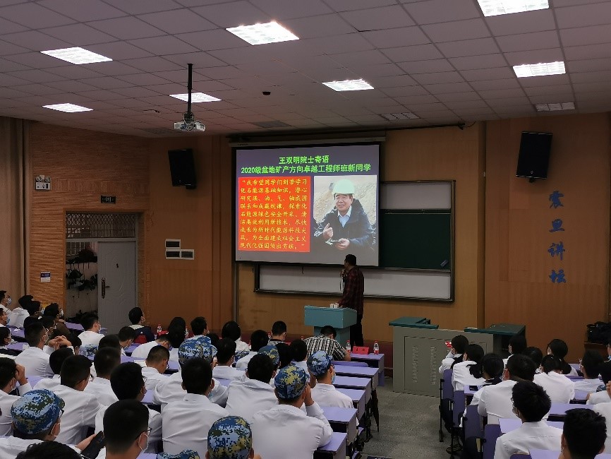 9月16日下午,石油工程系谢丛姣教授、李恒教授、钟志教授、许星光教授、孙梦迪副教授在教三楼110教室,为2020级本科生作石油工程专业报告,激励全体新生“肩负历史使命、登上科学高峰”。