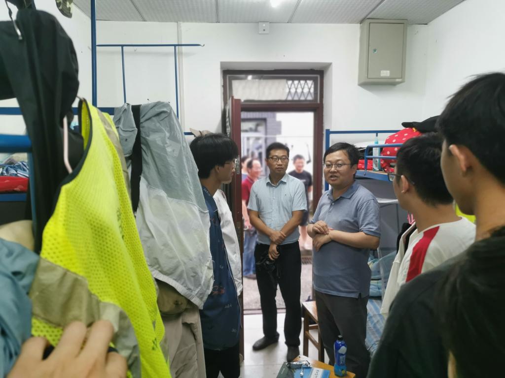7月27日下午,高复阳一行在实习基地集中看望慰问实习教师,到教室、宿舍走访学生,并与带队教师举行座谈会。座谈会上,高复阳详细询问老师们教学、生活总体情况,详细了解学生实习的开展进度,感谢老师们的辛勤付出。他指出,野外实践教学是学院教育教学的重要环节,也是学校人才培养的特色和优势,扎实做好野外实践教学对于提高学生培养质量至关重要。他强调,老师们要坚持立德树人思想引领,认真开展好教学活动,保证良好的教学效果;同时,野外实践教学也是落实三全育人、开展课程思政工作的良好契机,希望老师们齐心协力抓好学生的教育引导和综合培养工作。他强调,当前新冠肺炎疫情零星散发,防控形势仍然严峻;时下进入盛夏雨季汛期,全国多地遭遇重大洪水灾害,请全体老师务必做好疫情防控和野外实习安全工作;同时,注意做好交通安全、饮食安全、防电信诈骗等工作,确保师生人身和财产安全,确保本次实习顺利、圆满。